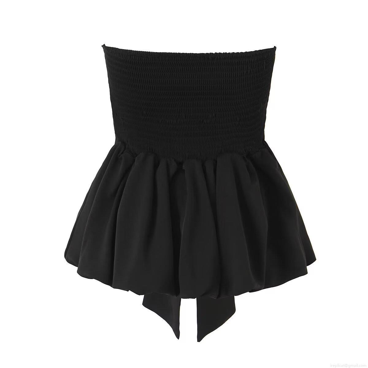 • Women's Sexy Black Bandeau Top Polyester Spandex Large Bow Smocking Back Tie-up Flared Hem Peplum Top For Party Date Night Out Casual Chic Summer Wear