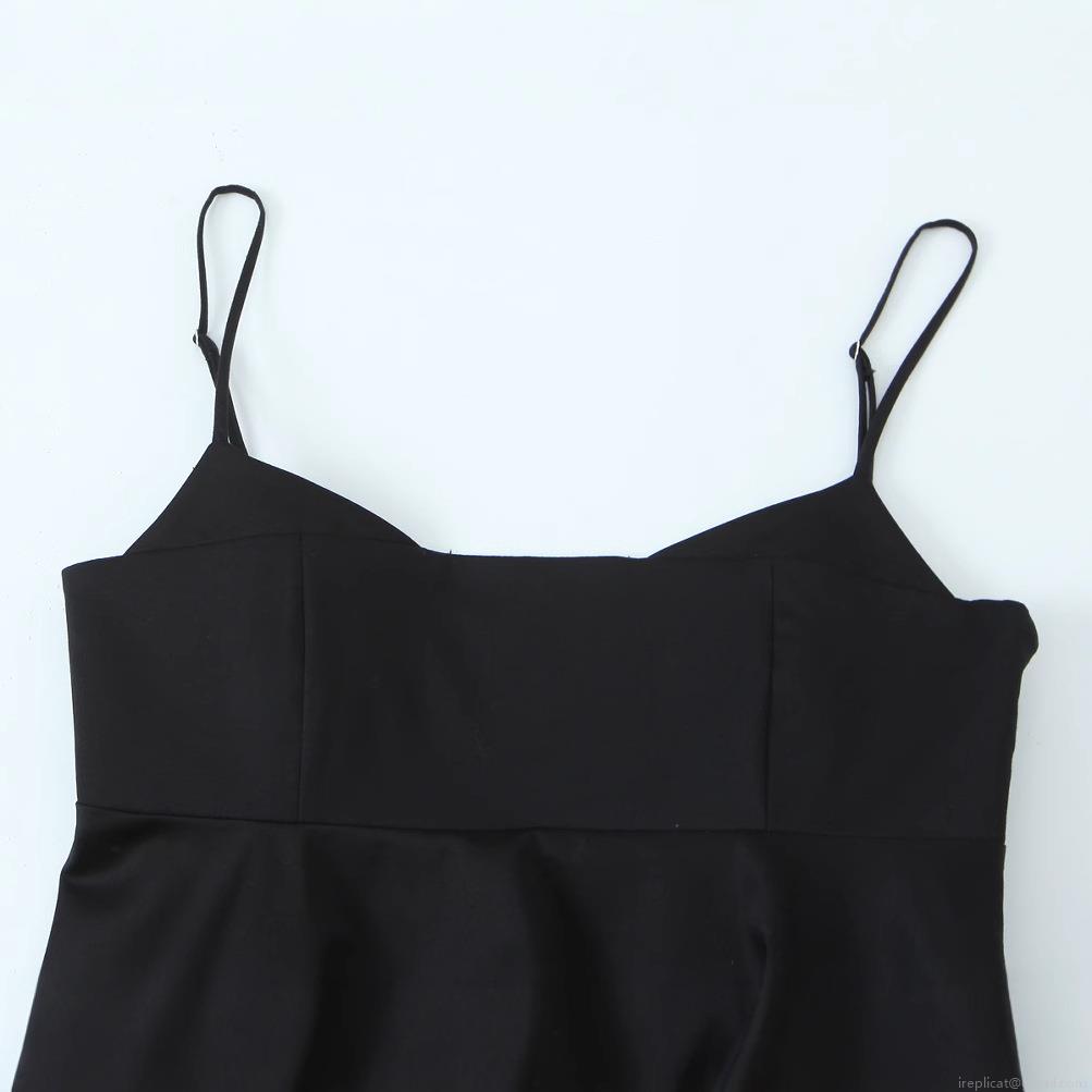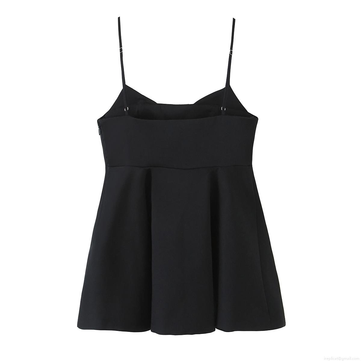 • Women's Sexy Black Camisole Top Adjustable Spaghetti Strap Flared Hem A-Line Woven Tank Top Solid Color Sleeveless Streetwear Vest For Women