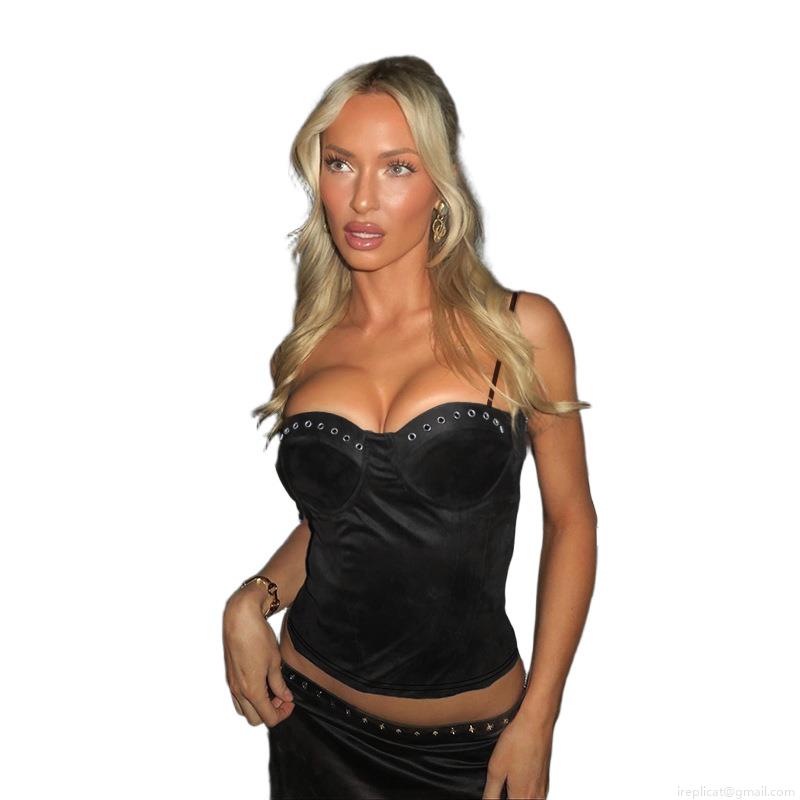 • Women's Sexy Black Corset Camisole With Metal Grommet Eyelet Decoration Slim Fit Spaghetti Strap Cropped Tank Top For Party Clubwear Streetwear
