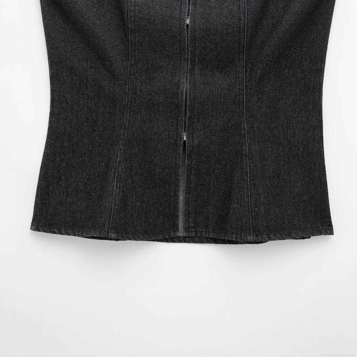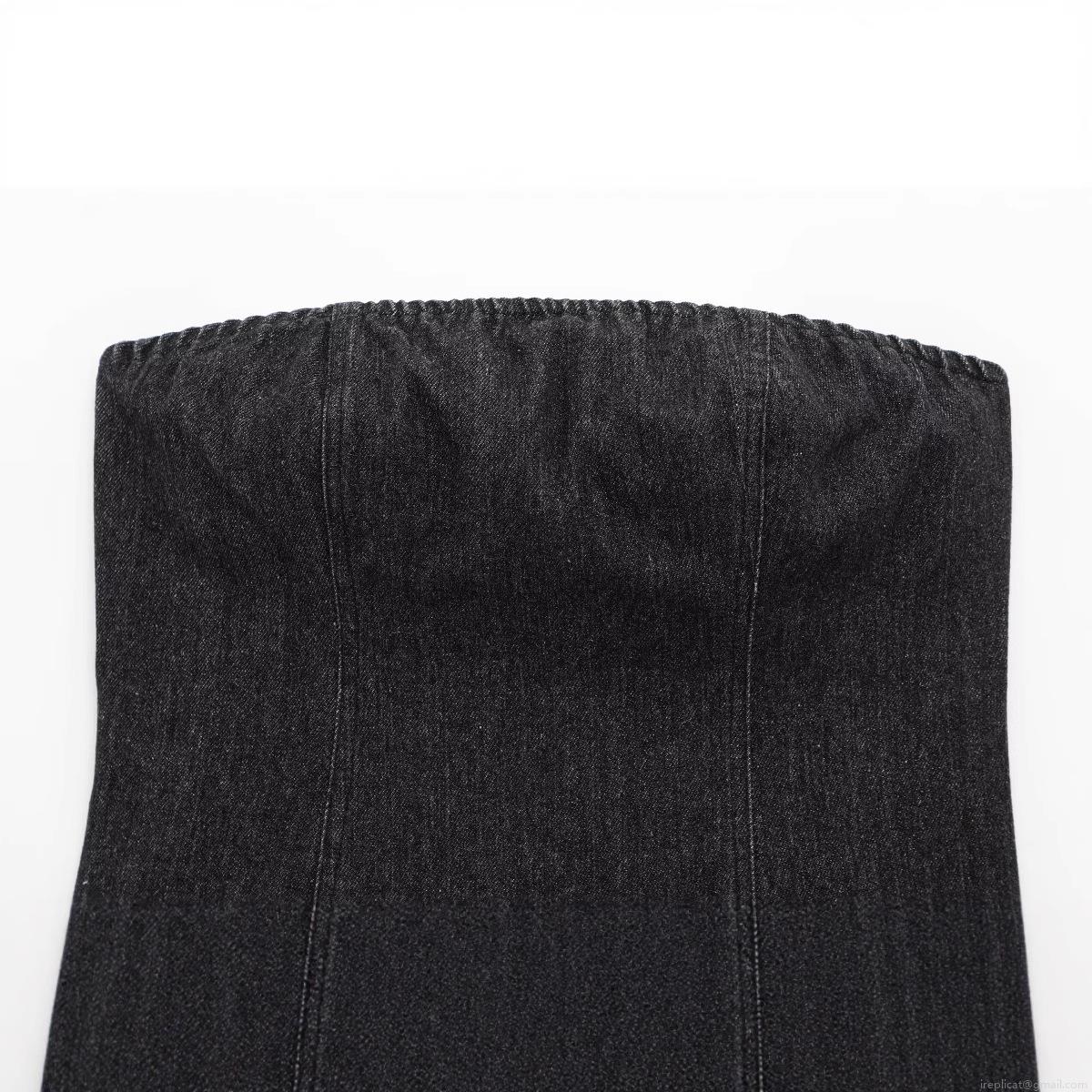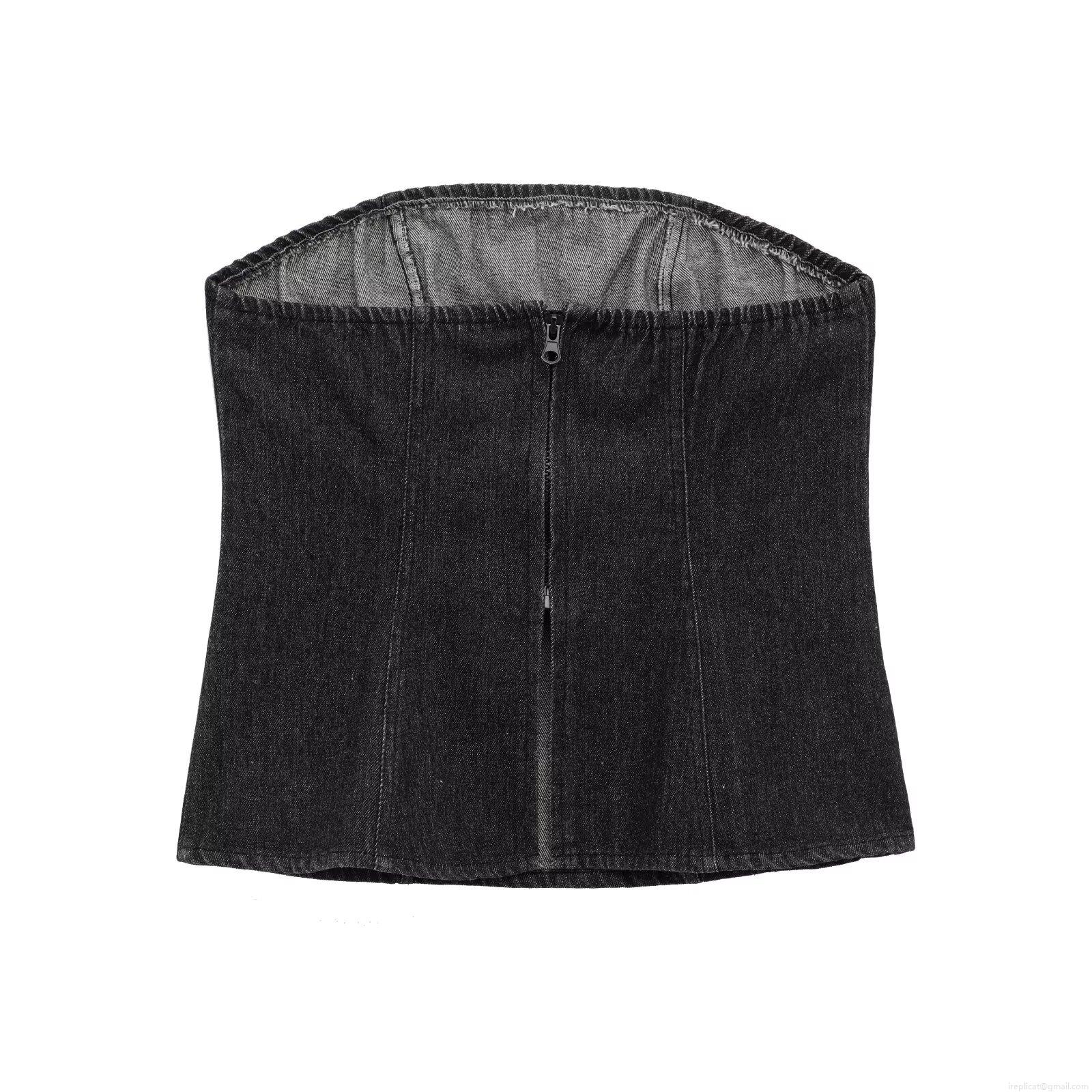 • Women's Sexy Black Denim Tube Top Strapless Off Shoulder Zip Up Crop Top Slim Fit Cotton Blend Jean Top For Summer Party Clubwear