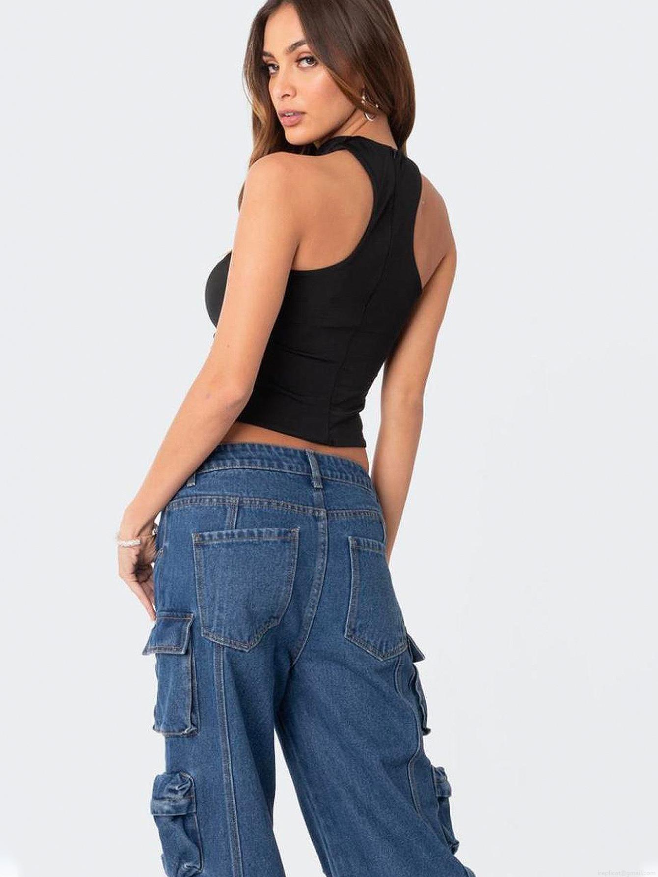 • Women's Sexy Black Drawstring Bandeau Top With Choker Ribbed Polyester Spandex Cropped Tank Top For Summer Vacation Party Streetwear