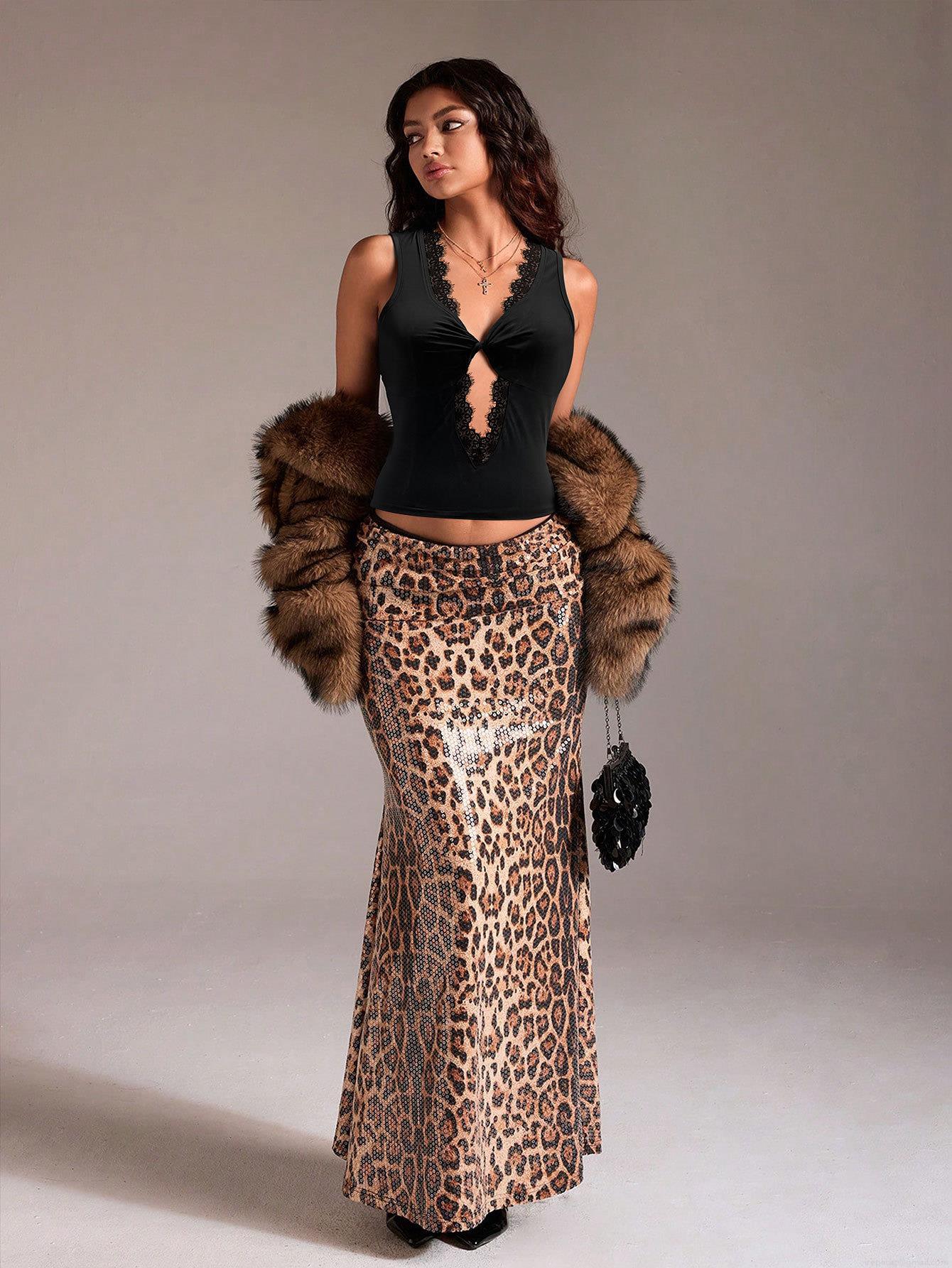 • Women's Sexy Black Lace Trim V-Neck Tank Top Twist Knot Cut-out Sleeveless Slim Fit Crop Top Polyester Spandex Ribbed Short Vest For Party Club Summer