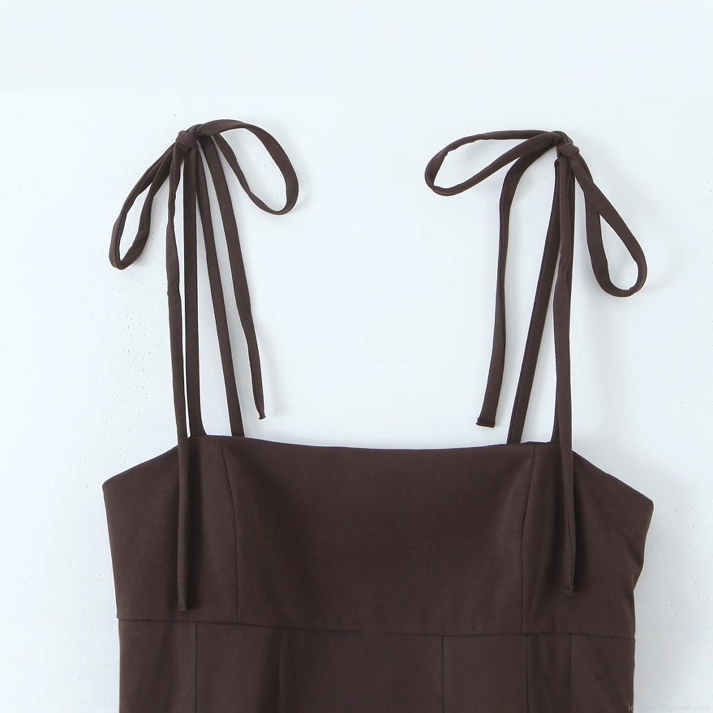 • Women's Sexy Bow Tie Strap Camisole Acrylic Spandex Slim Fit Crop Top Deep Brown Summer Party Streetwear Fashion Sleeveless Top