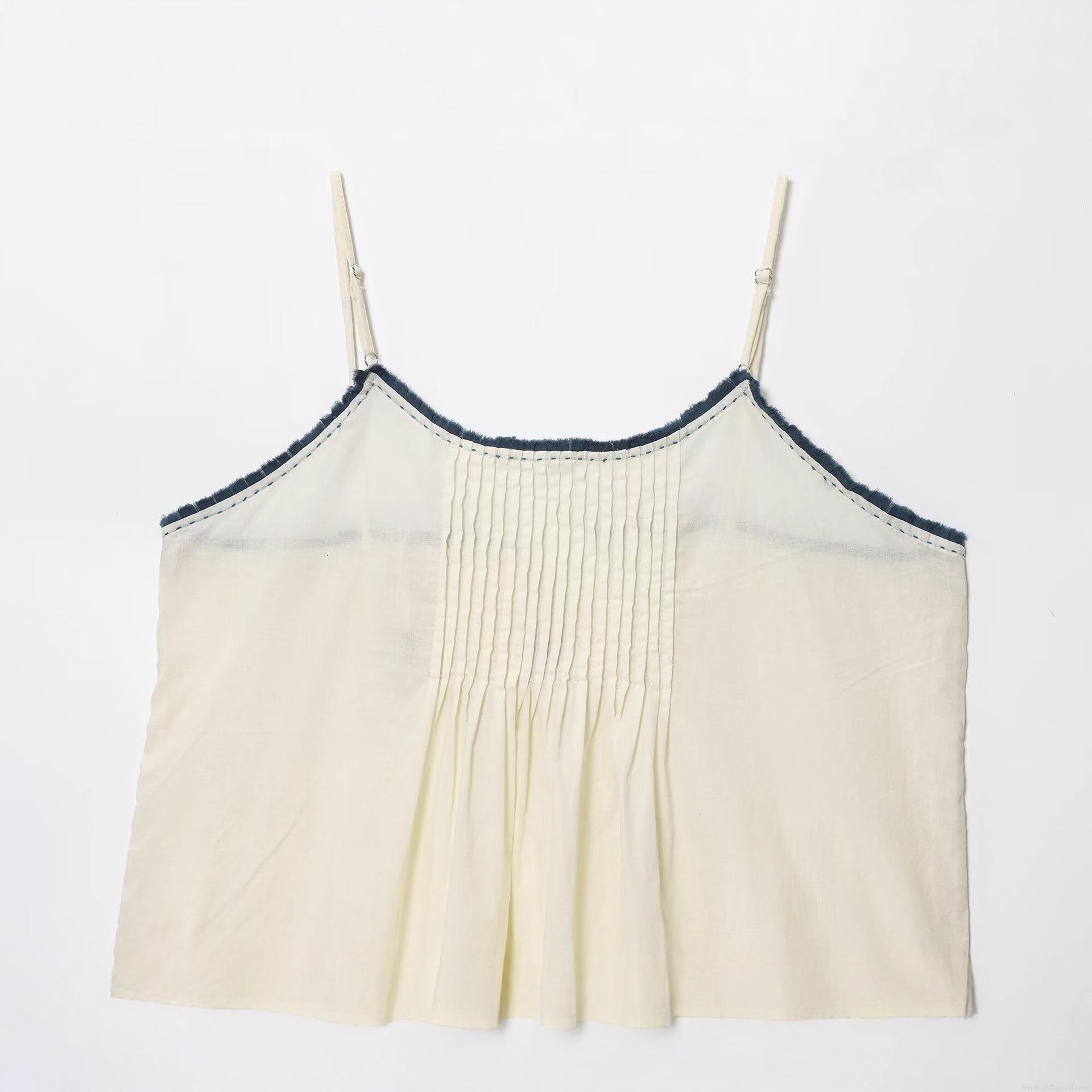 • Women's Sexy Cami Top Smocking Contrast Trim Tank Top Back Lace Up With Bead Sleeveless Polyester Sling Top For Summer Daily Vacation Wear