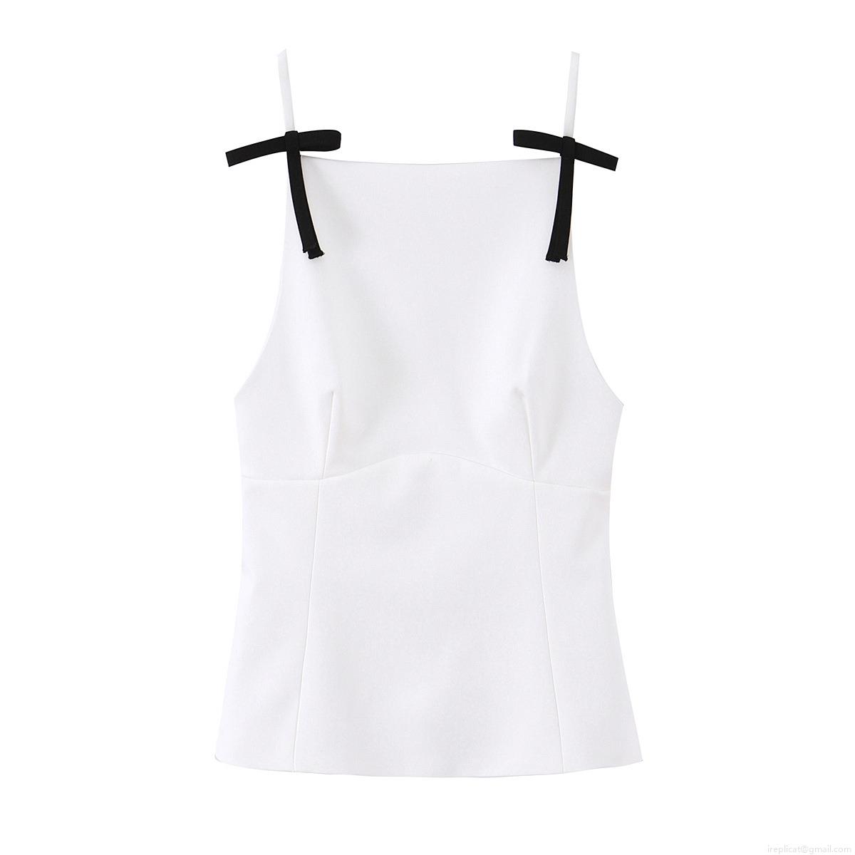 • Women's Sexy Cami Top With Black Bow Straps Contrast Color Square Neck Slim Fit Acrylic Woven Tank Top For Summer Streetwear Party Daily Wear