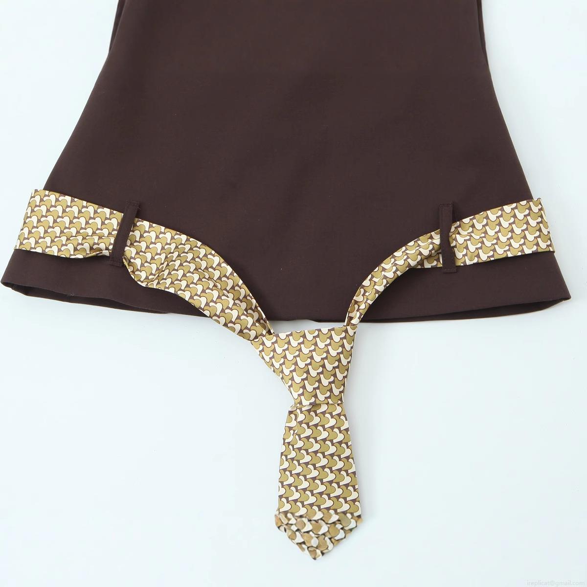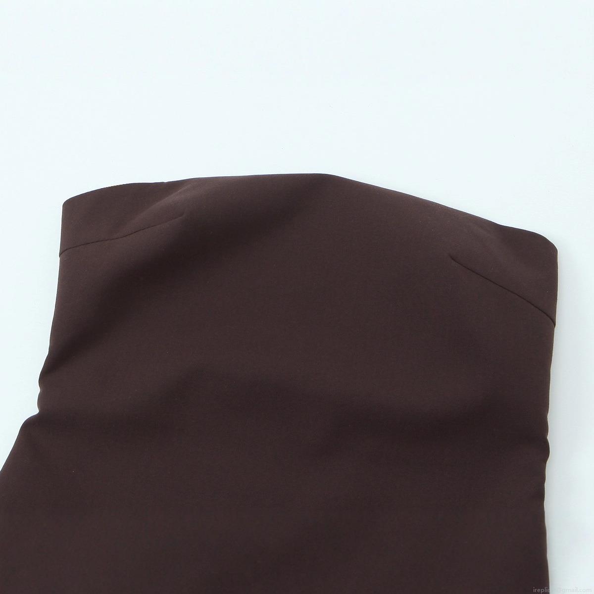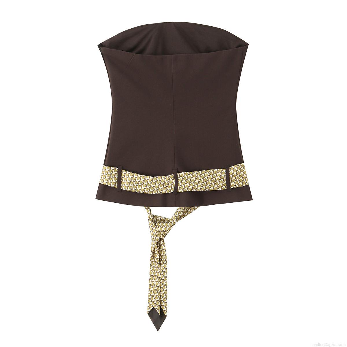 • Women's Sexy Coffee Tube Top With Geometric Print Tie Belt Slim Fit Strapless Woven Polyester Blouse For Summer Party Vacation Clubwear