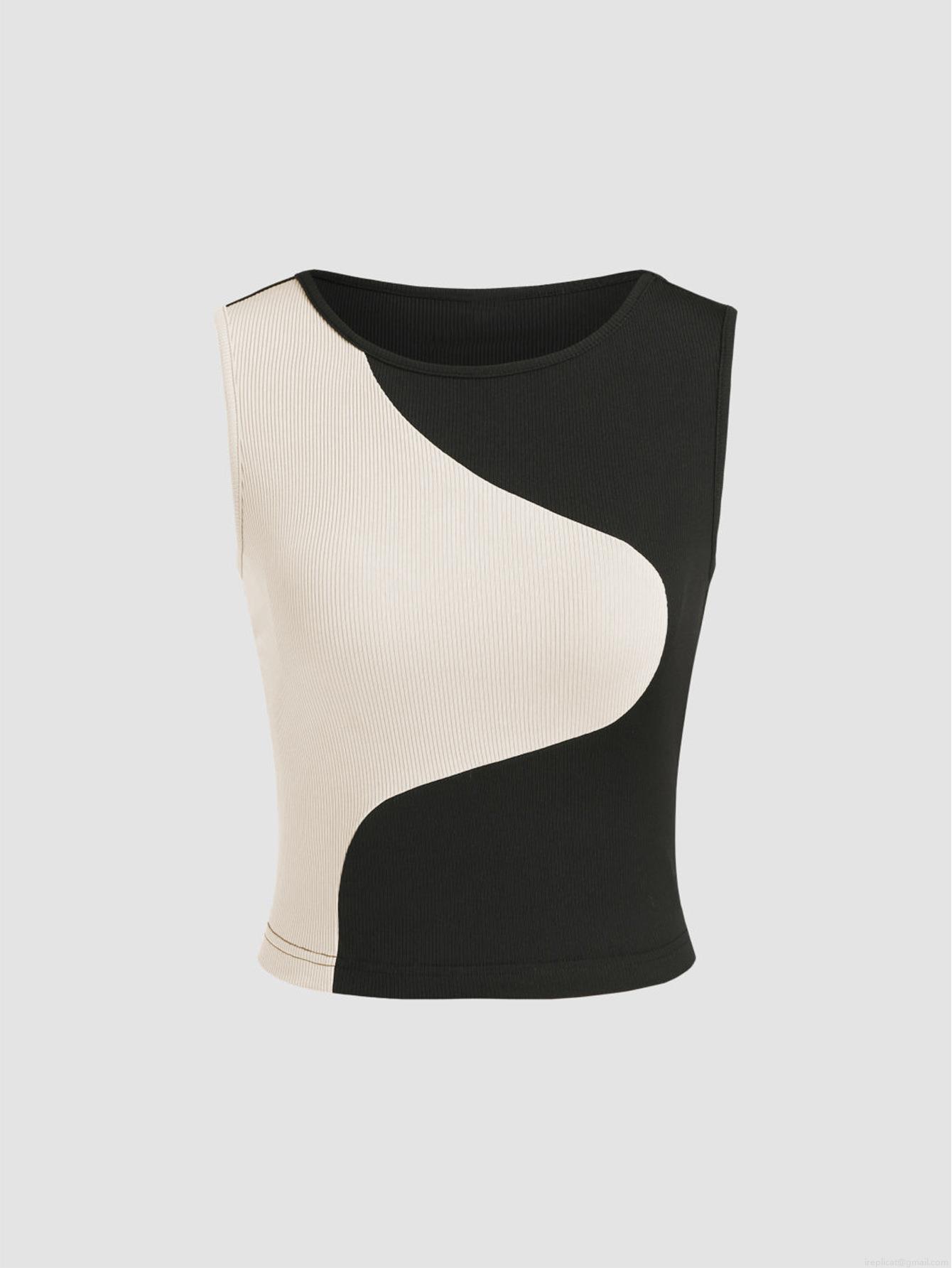 Splice, Color Blocking, Wave, Ribbed, Irregular Splicing, Short Crop Top