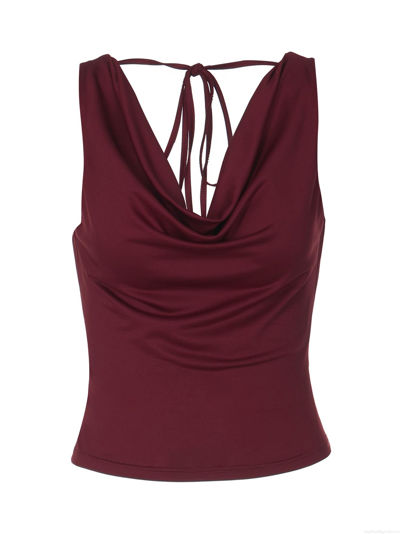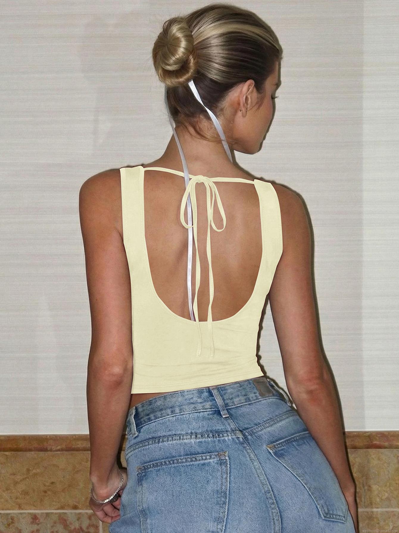 • Women's Sexy Cowl Neck Backless Lace-up Tank Top Sleeveless Slim Fit Polyester Spandex Vest Summer Streetwear Cami For Daily Party