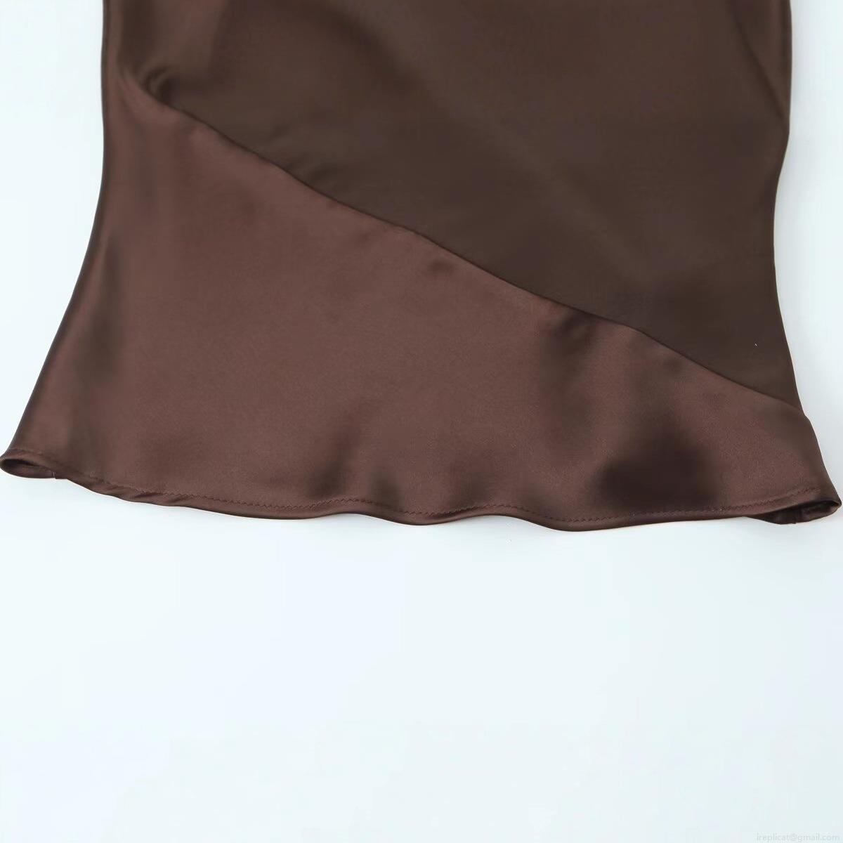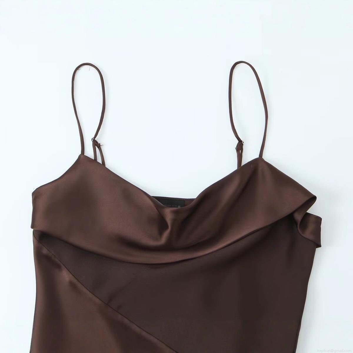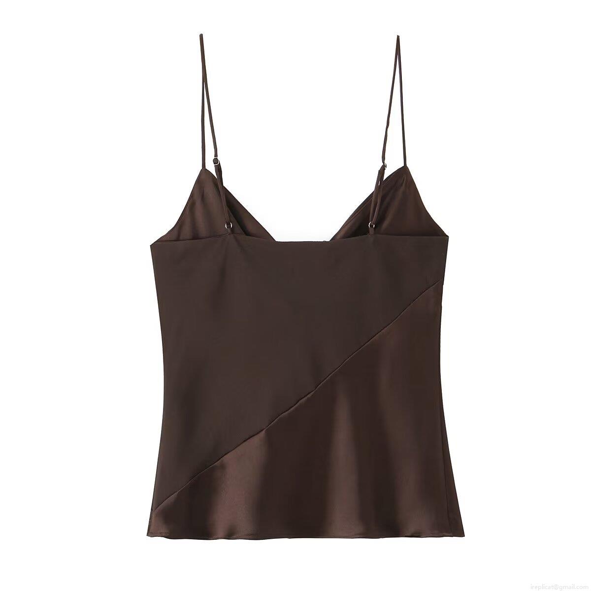 • Women's Sexy Cowl Neck Satin Camisole Top Chic Silk Like Spaghetti Strap Tank Top Solid Color Deep Brown Streetwear Backless Summer Vest For Women