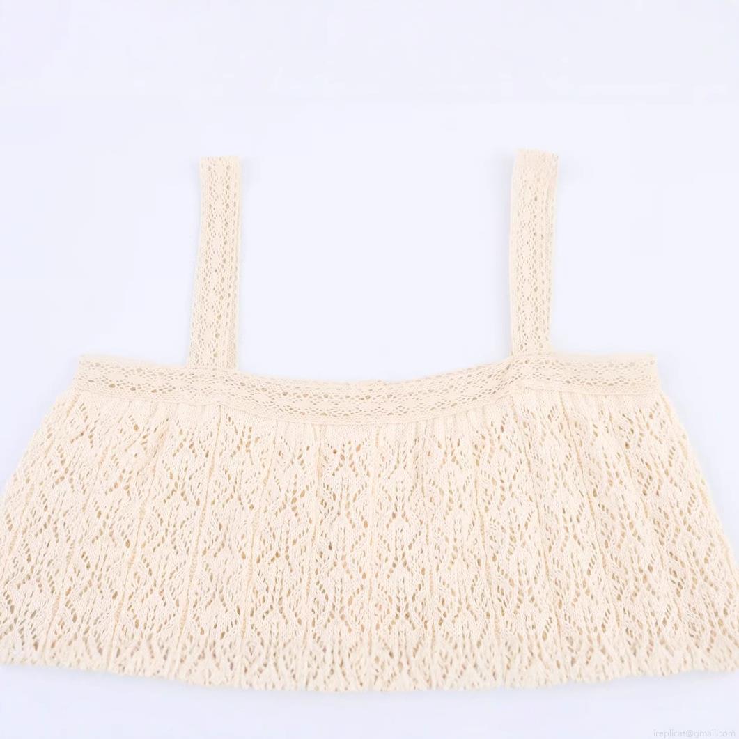 • Women's Sexy Crochet Knit Cami Top Vintage Lace Hollow Out Button Down Spaghetti Strap Sleeveless Vest For Summer Beach Vacation Streetwear Boho Style Off White
