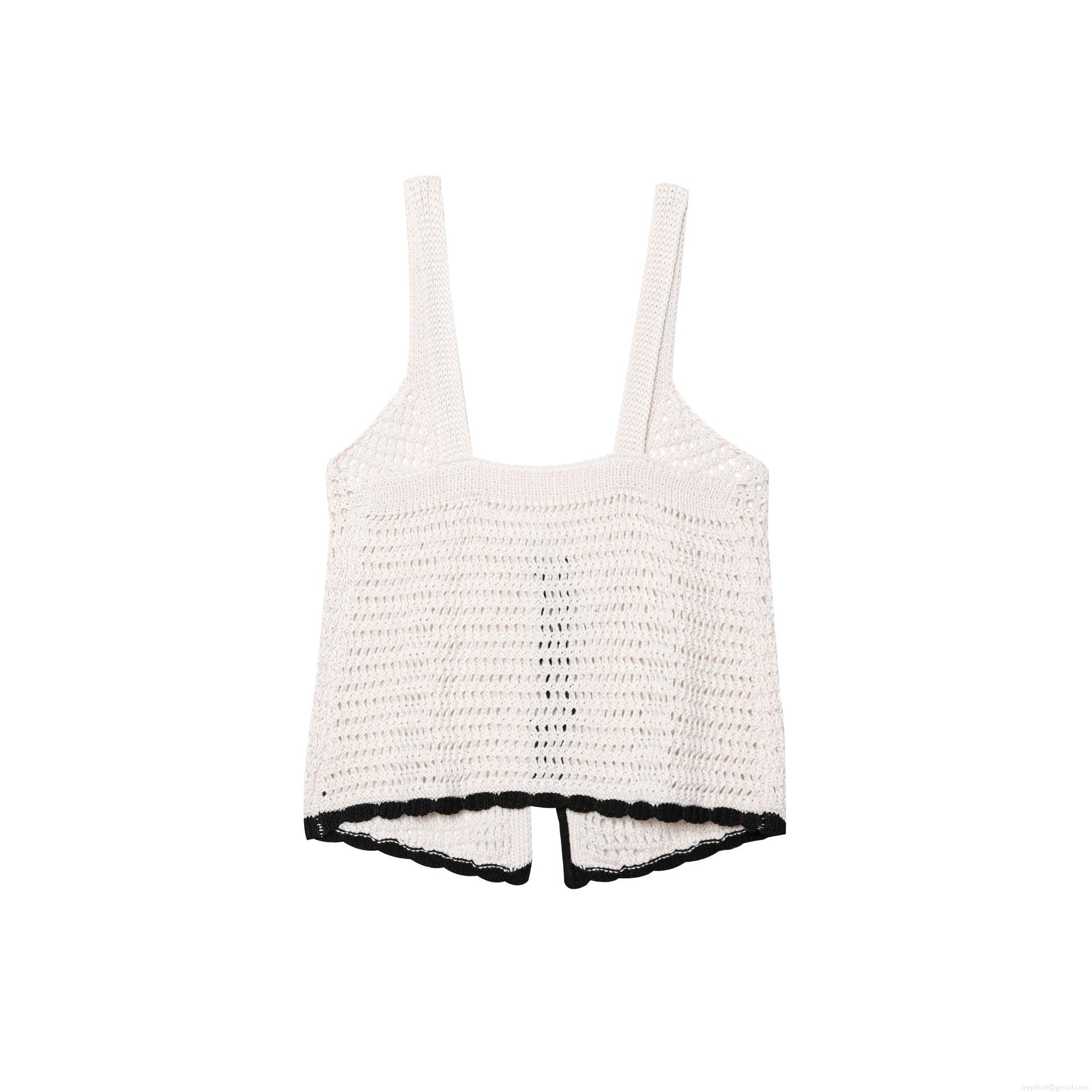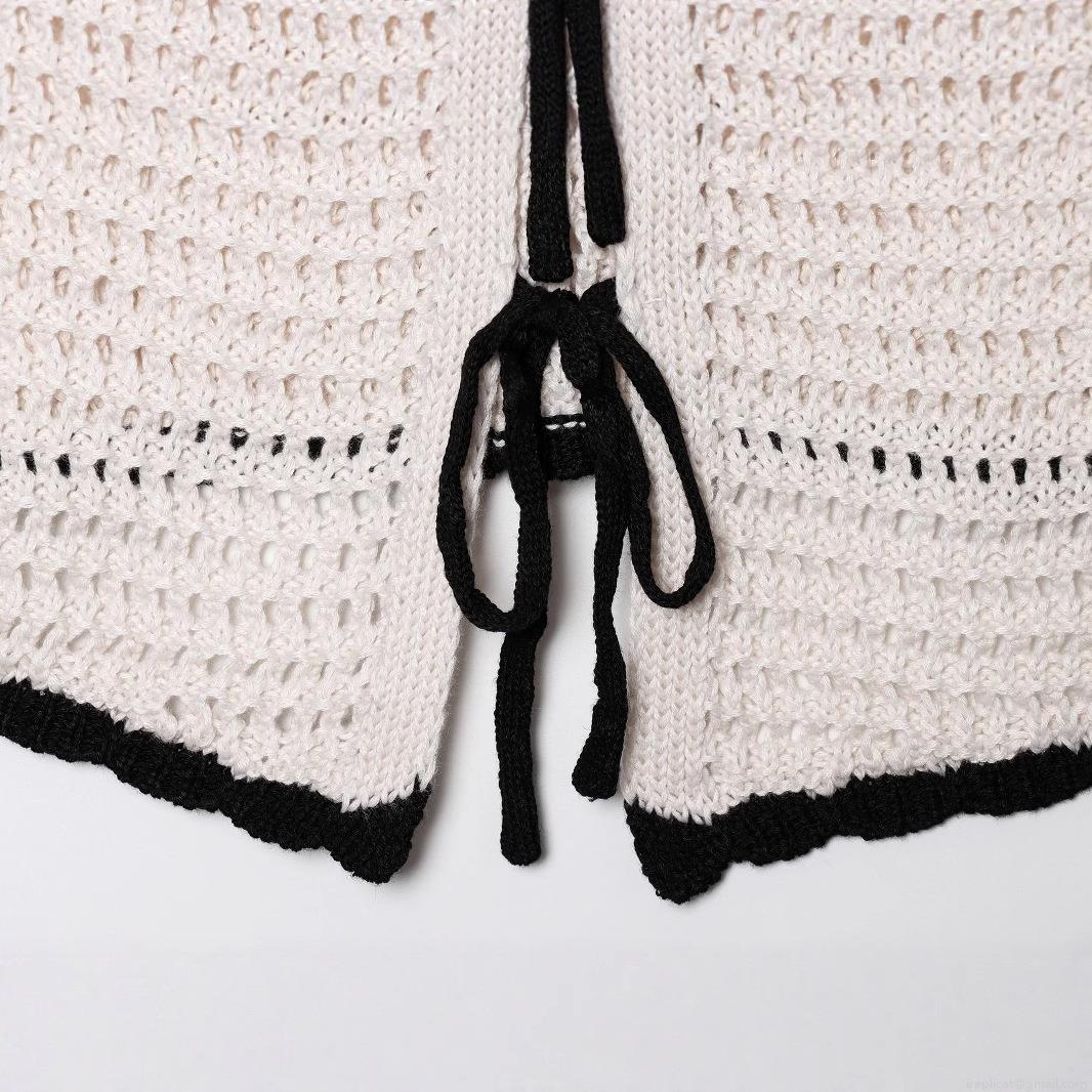 • Women's Sexy Crochet Knit Tank Top Ivory White With Black Trim Bow Tie Front Hollow Out Camisole For Beach Vacation Summer Streetwear Boho Crop Top