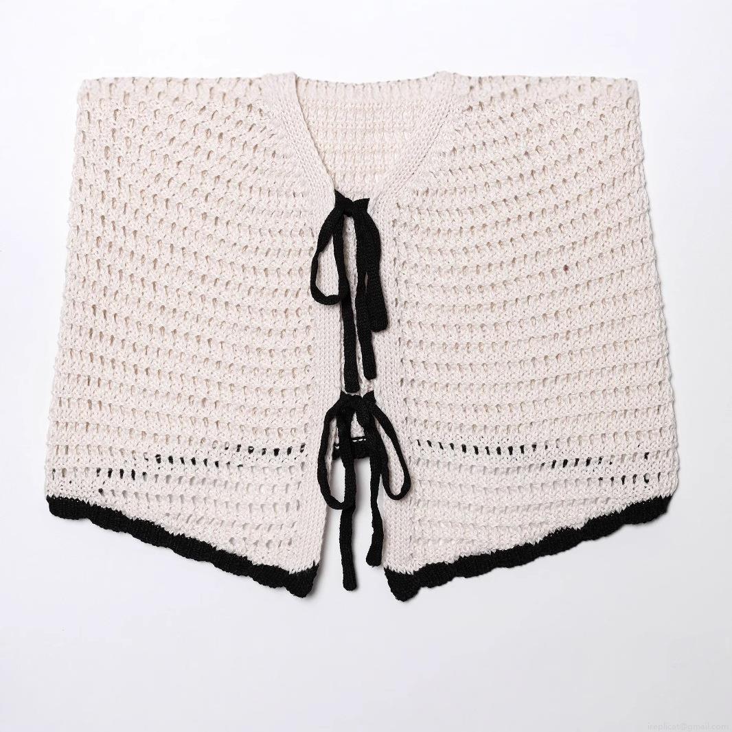 Bow, Color Blocking, Lace-up Decoration, Crochet Openwork, Contrast Piping