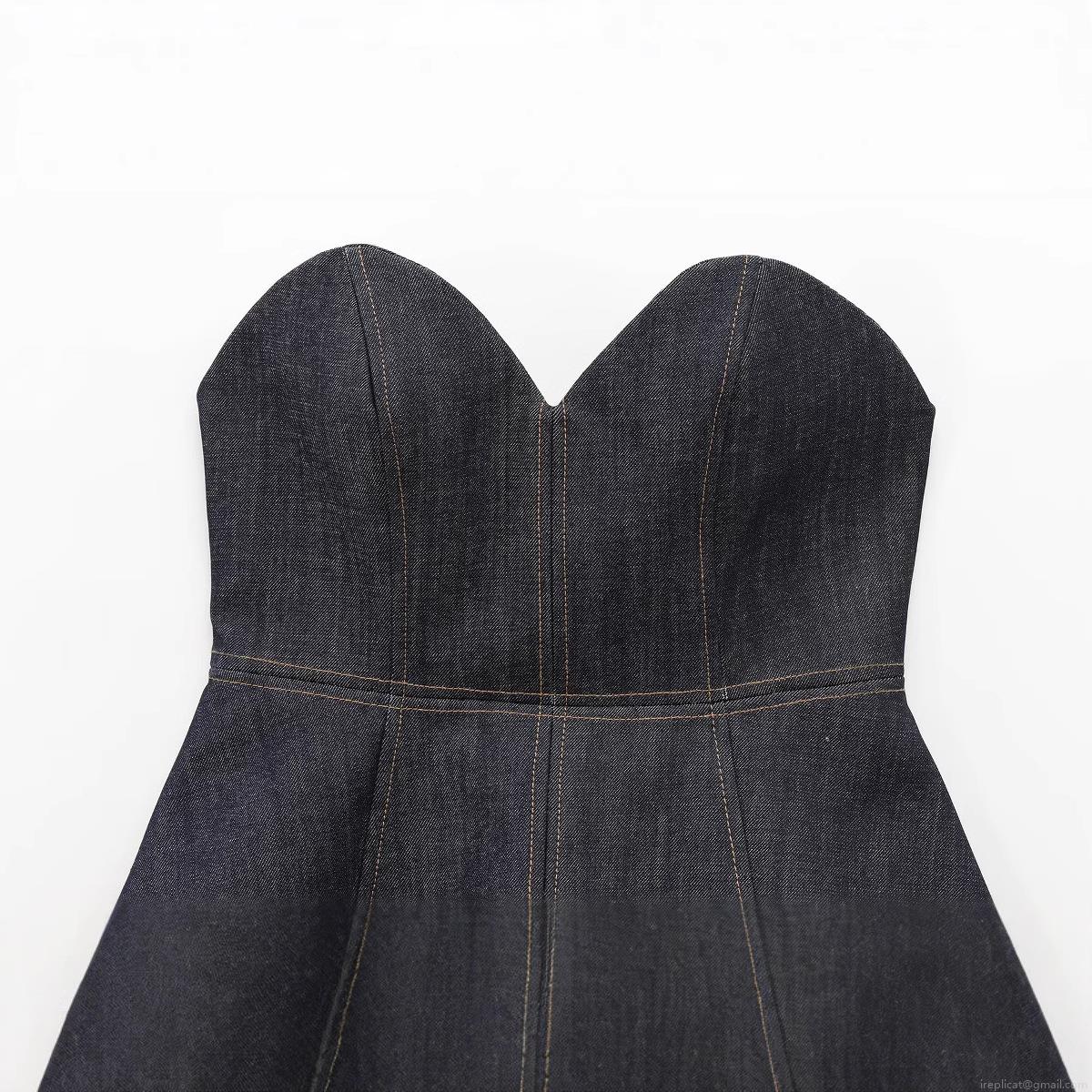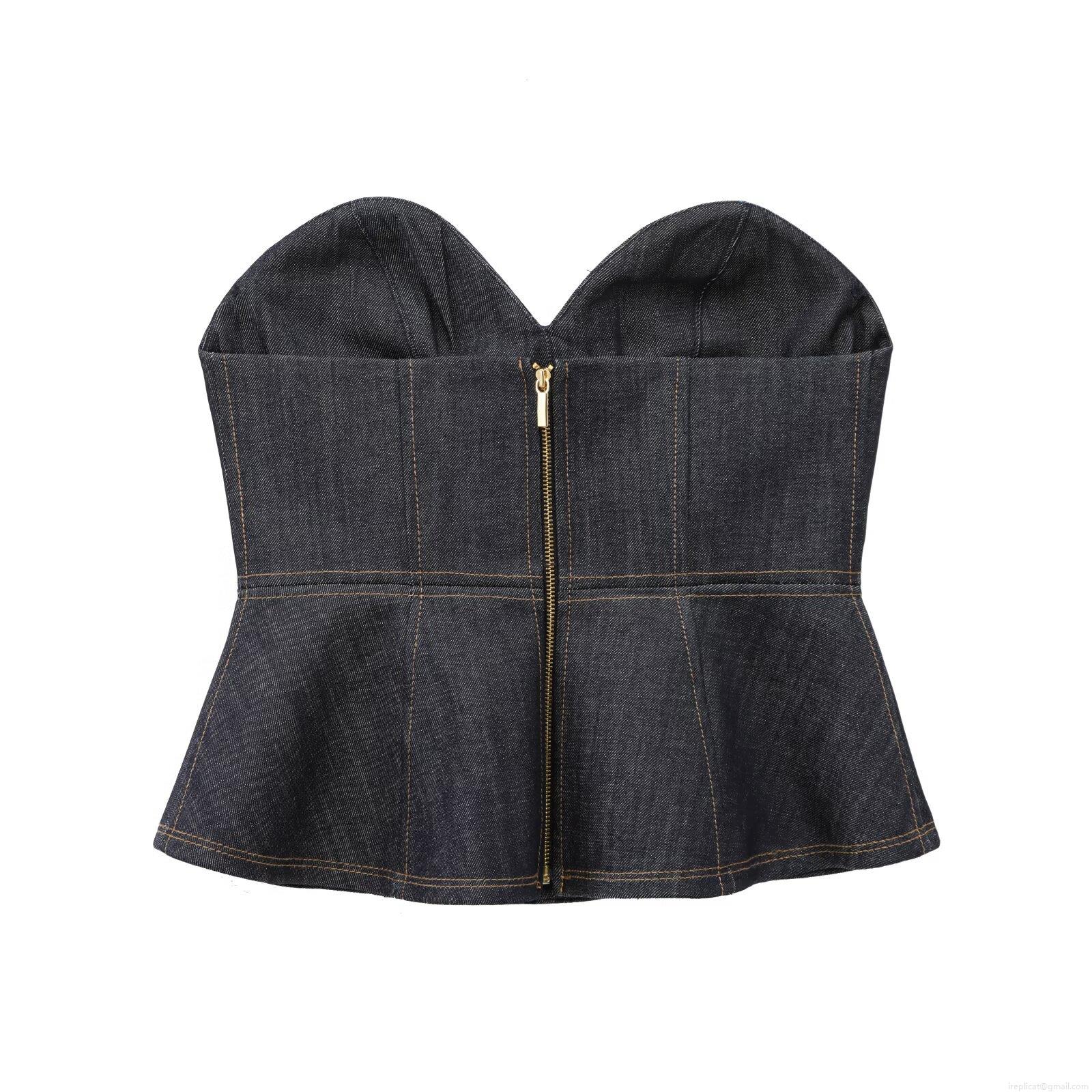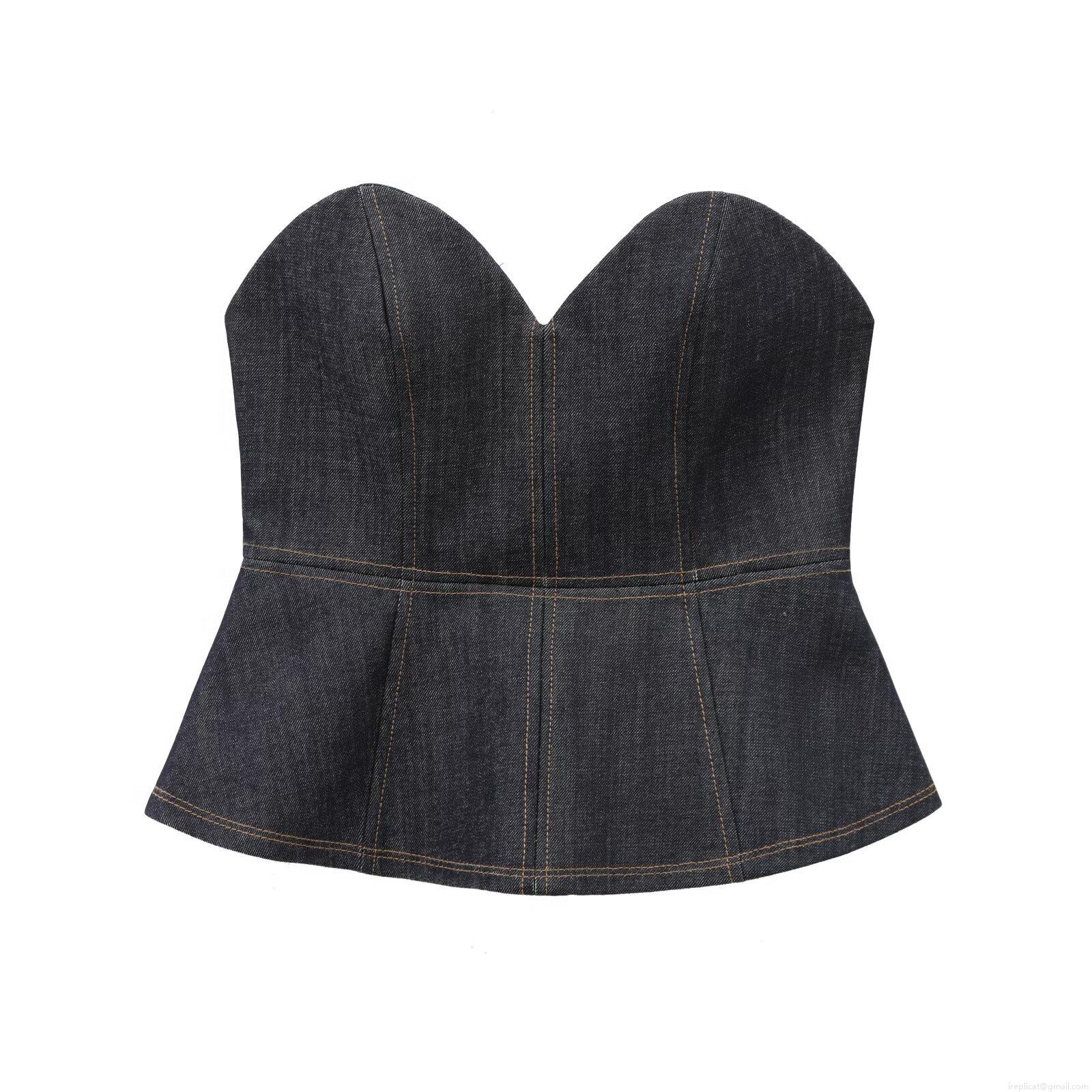 • Women's Sexy Dark Blue Denim Peplum Tube Top Sweetheart Neck Back Zipper Corset Contrast Stitching Strapless Slim Fit Crop Top Summer Fashion Streetwear Women