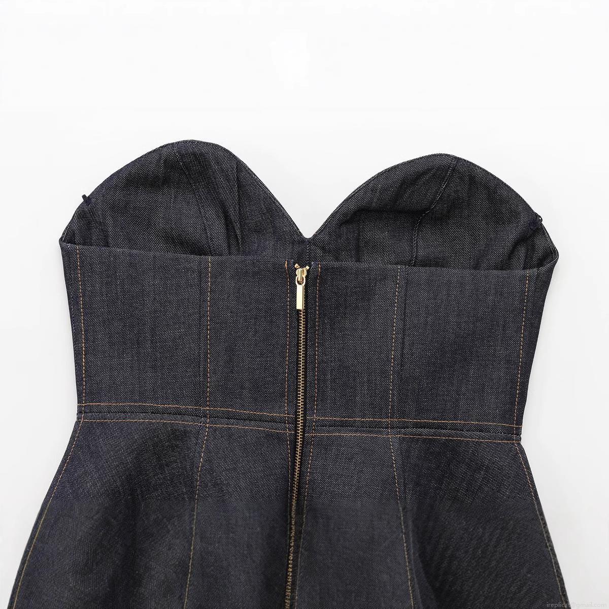 Women's Sexy Dark Blue Denim Peplum Tube Top Sweetheart Neck Back Zipper Corset Contrast Stitching Strapless Slim Fit Crop Top Summer Fashion Streetwear Women