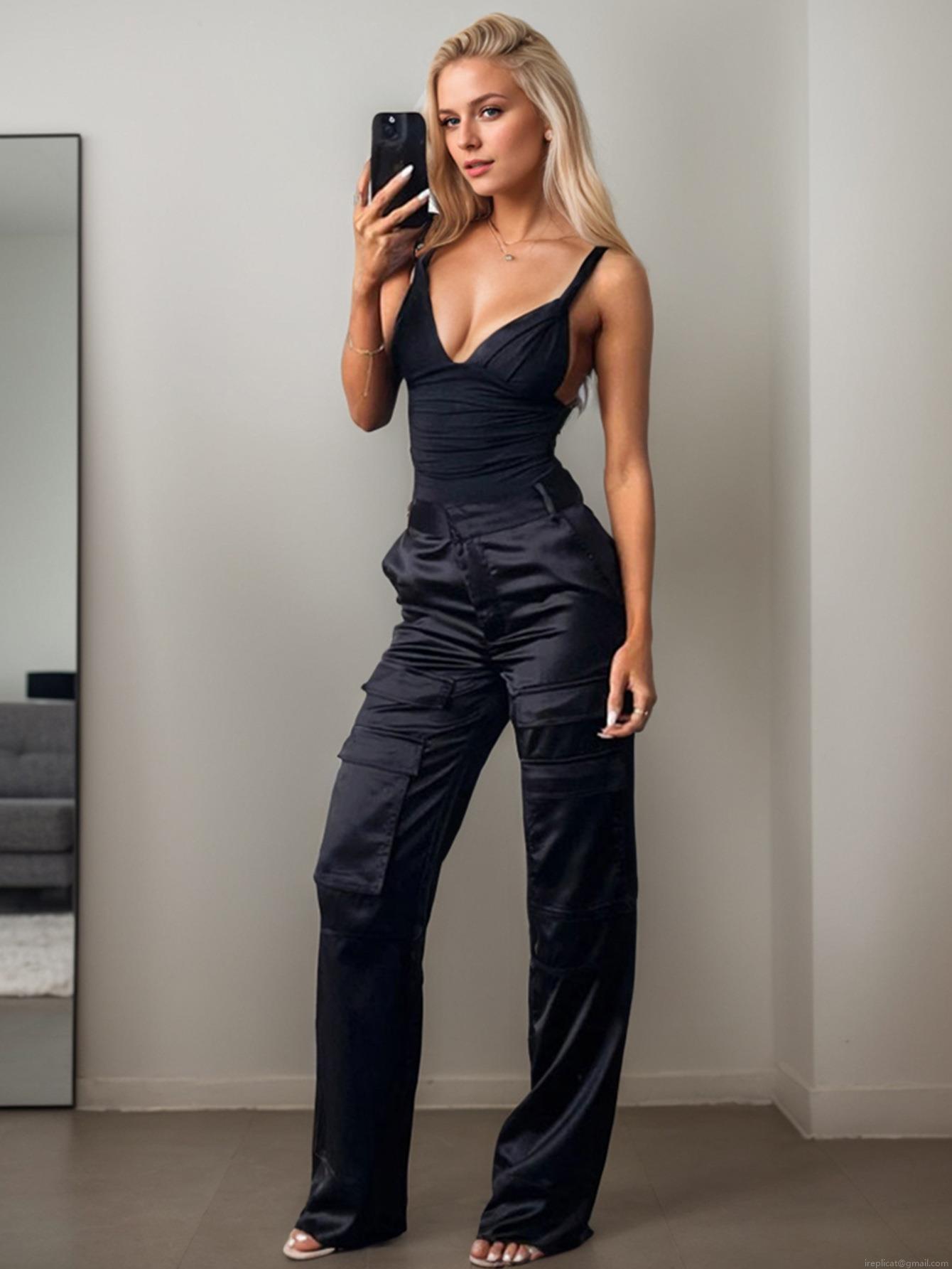 • Women's Sexy Deep V Neck Cami Top Polyester Elastane Slim Fit Solid Color Summer Strappy Tank Top Outwear For Women