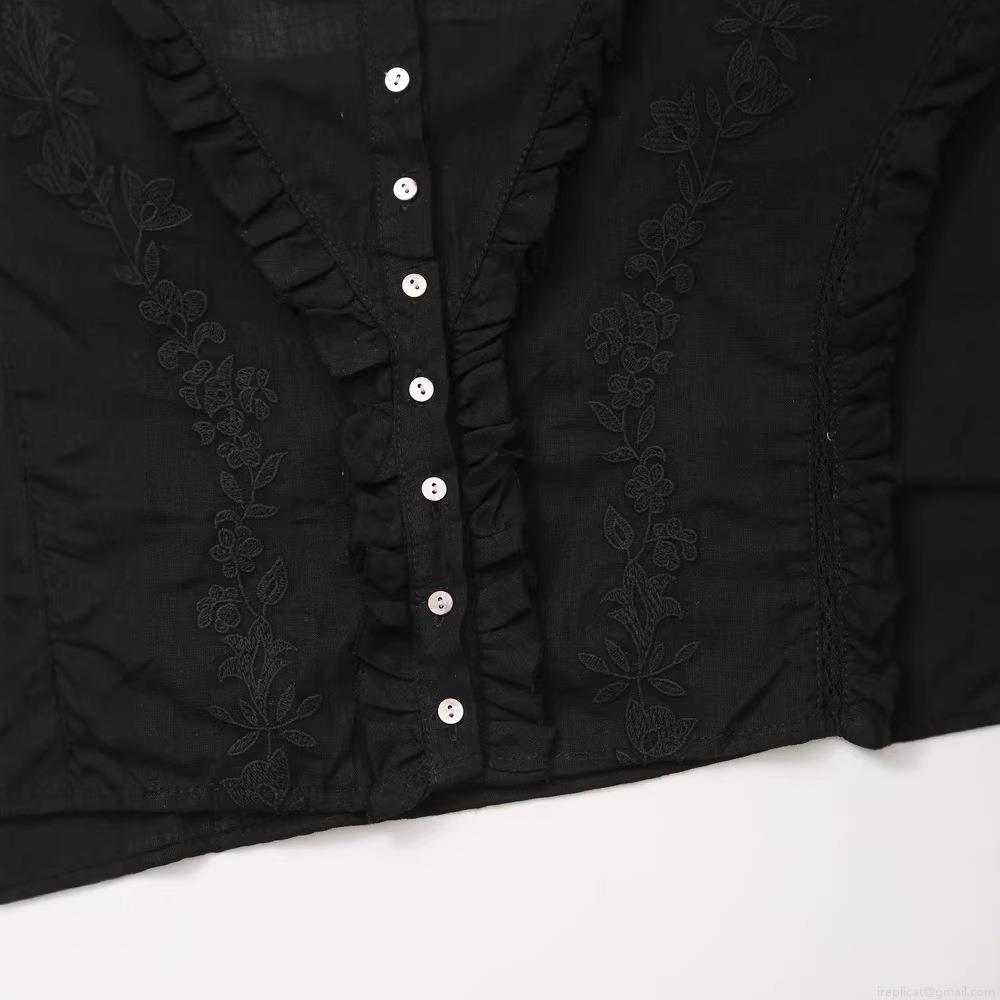 Solid Color, Embroidery, Pleats, Ruffles, Plants And Flowers, Button