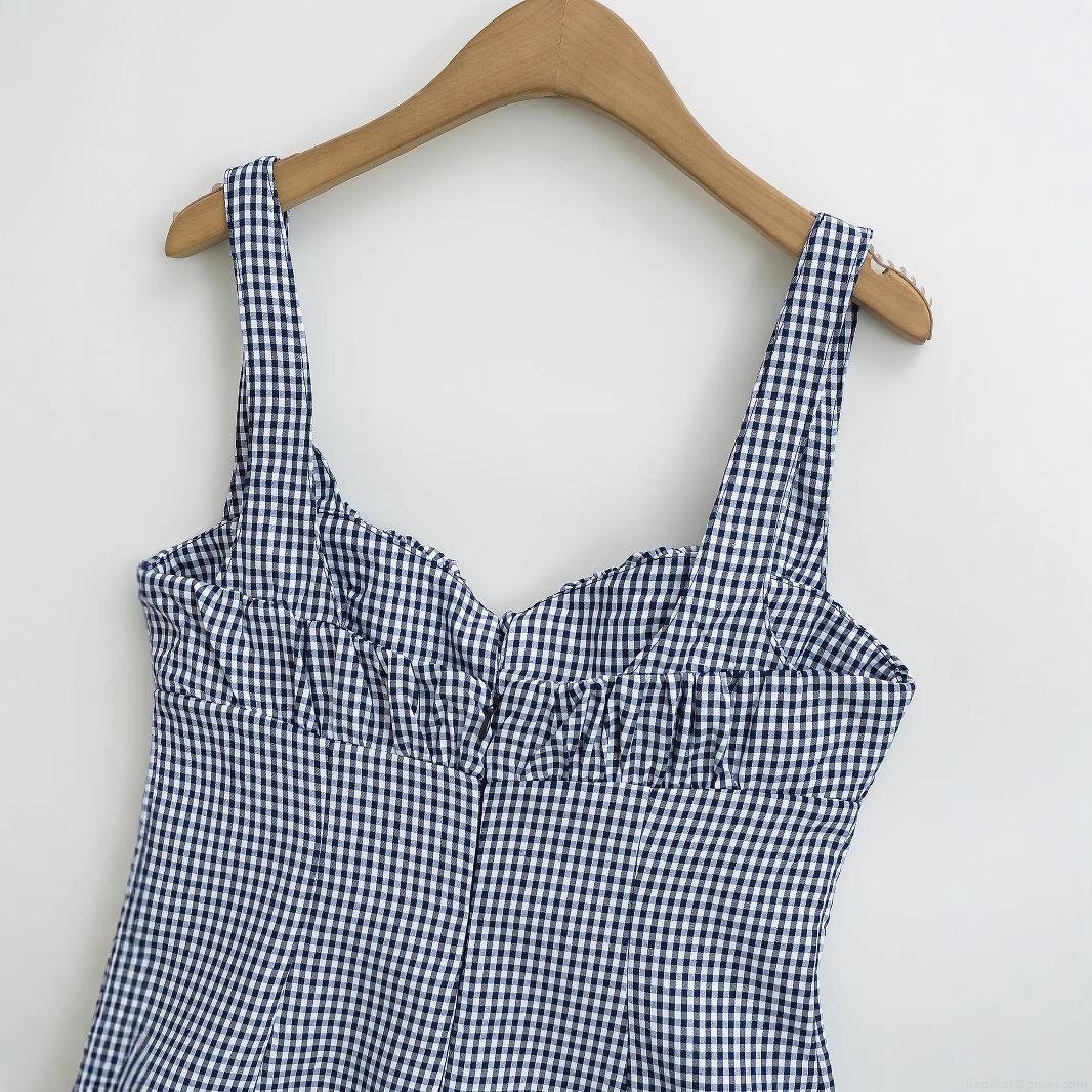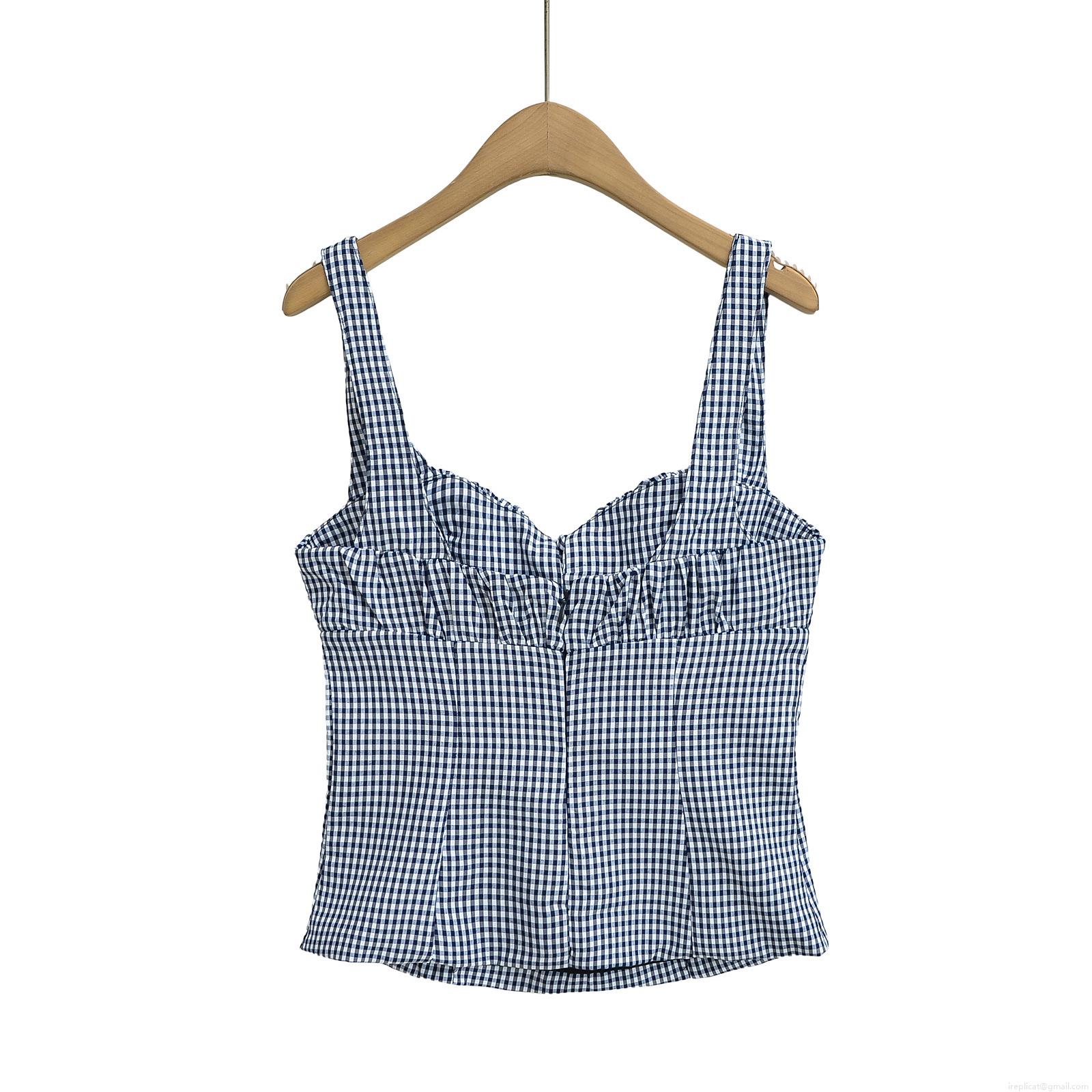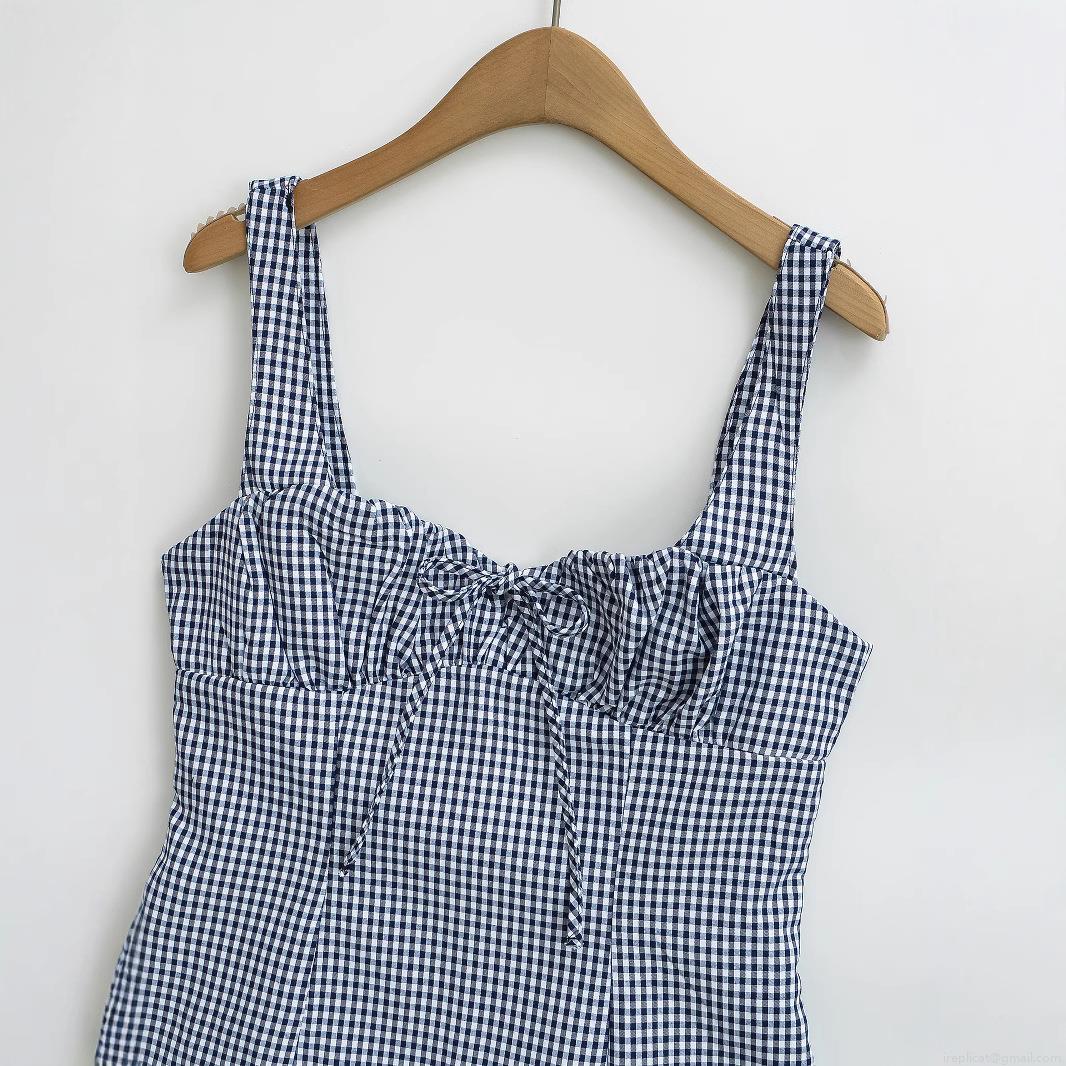 • Women's Sexy Gingham Camisole Summer Backless Ruched Bust Bow Tie Plaid Spaghetti Strap Crop Top Polyester Tank Top Streetwear