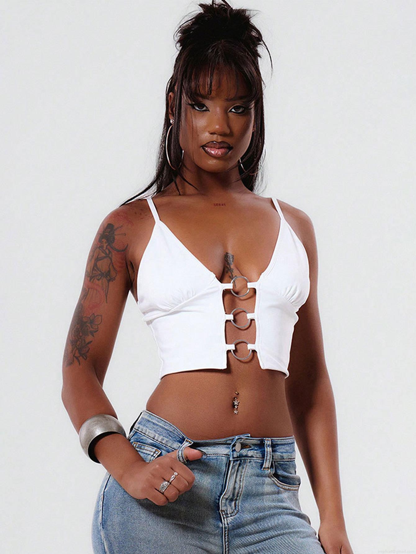 Metal Ring Buckle Decoration And Cutout Design On The Chest
