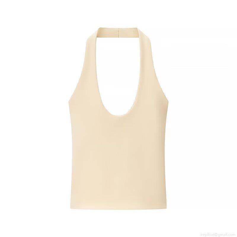 • Women's Sexy Halter Neck Backless Tank Top Summer Solid Color Polyester Rib Knit Sleeveless Crop Top Streetwear Slim Fit Camisole For Women