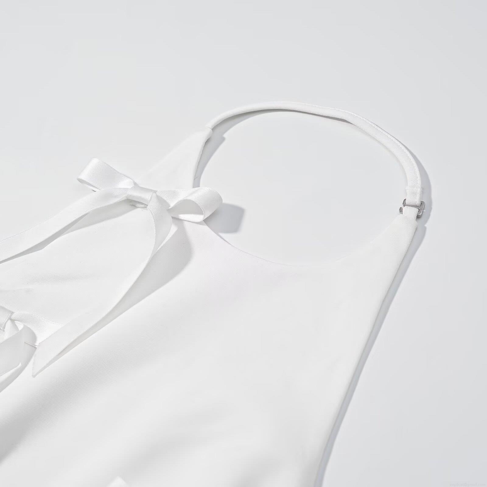 • Women's Sexy Halter Neck Backless Top With Multiple Satin Bows White Polyester Slim Fit Camisole For Summer Party Streetwear Clubwear