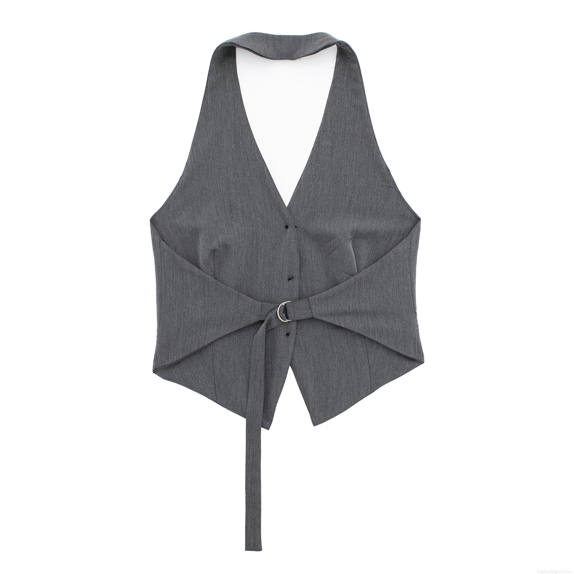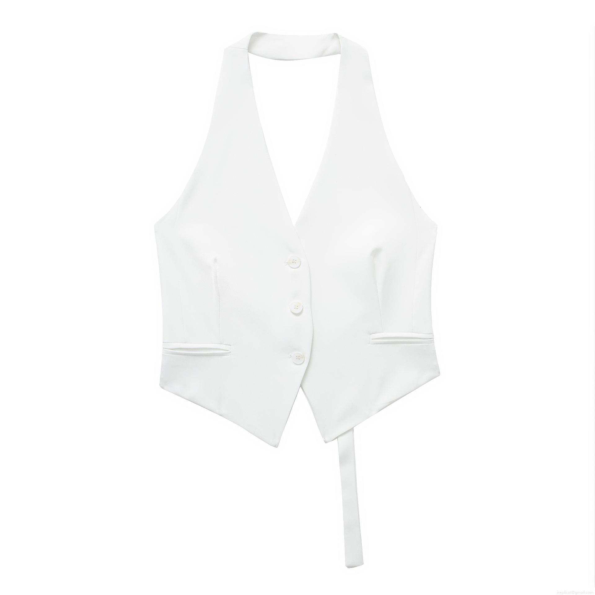 Women's Sexy Halter Neck Backless Vest Top 100% Polyester Three Button V-Neck Cropped Waistcoat Solid Color Summer Office Casual Fashion Streetwear