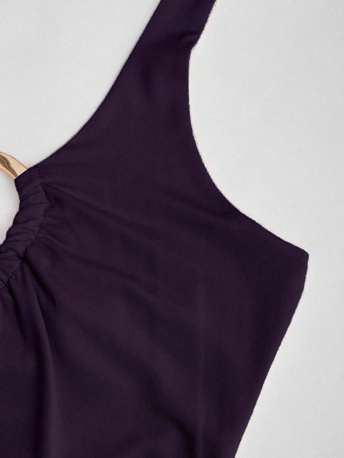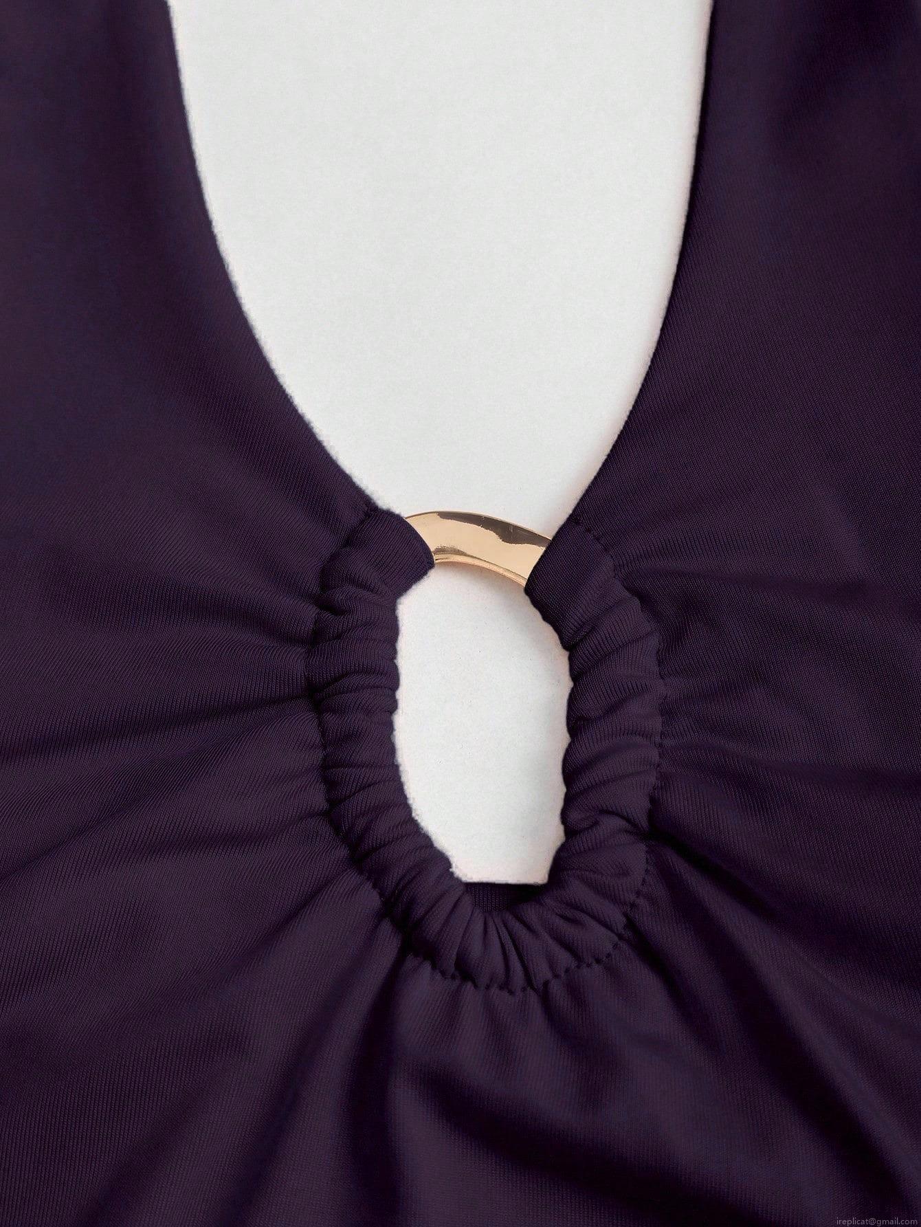 Solid Color, Pleats, Lace, Backless, Gold Metal Ring, Neckband Design