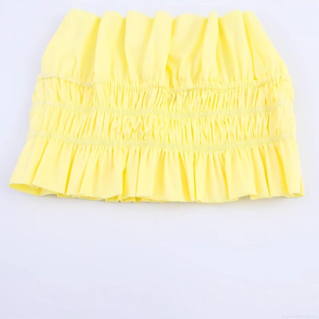 • Women's Sexy Halter Neck Crop Top Slim Fit Smocked Waist Backless Polyester Sleeveless Shirt For Summer Vacation Party Ins Style Yellow