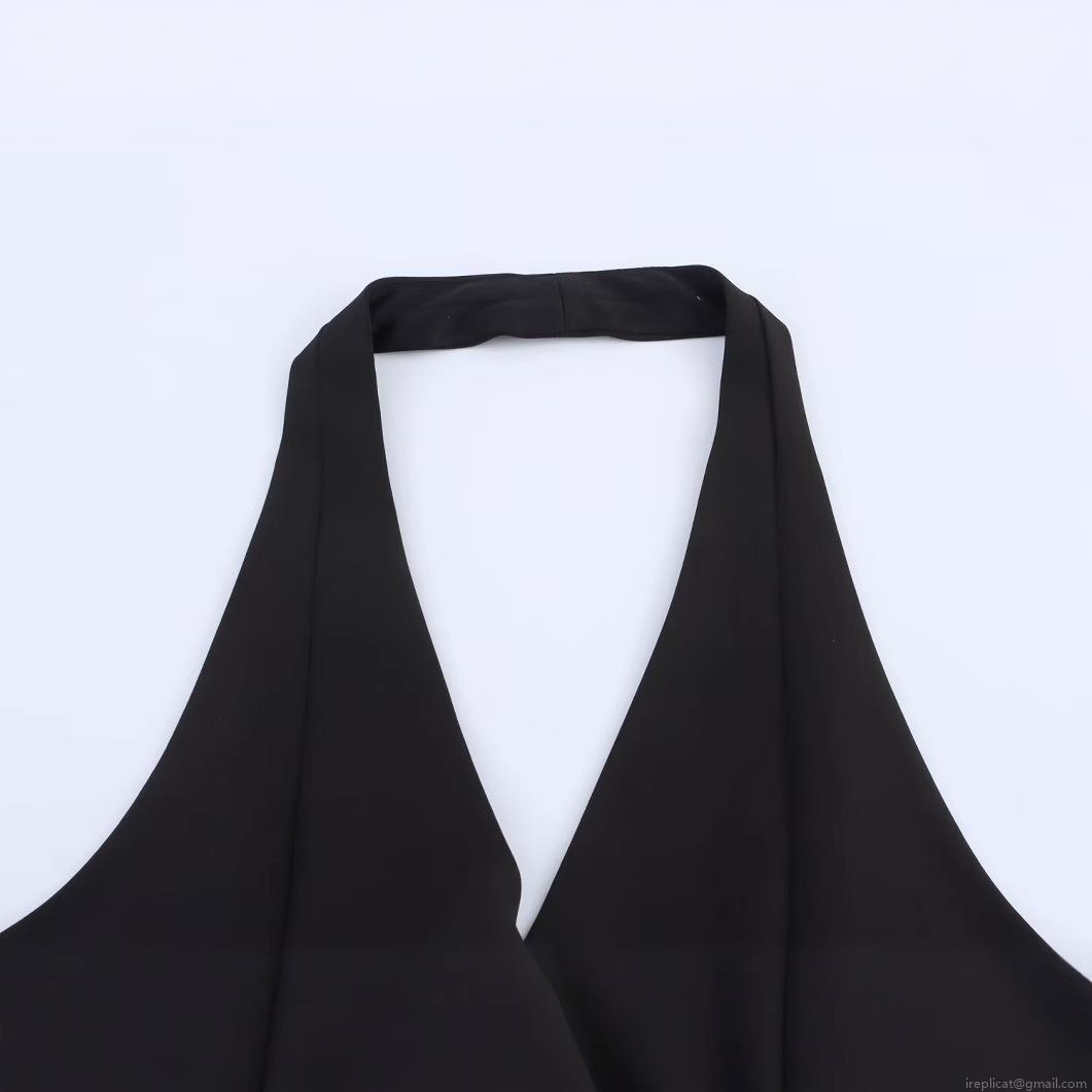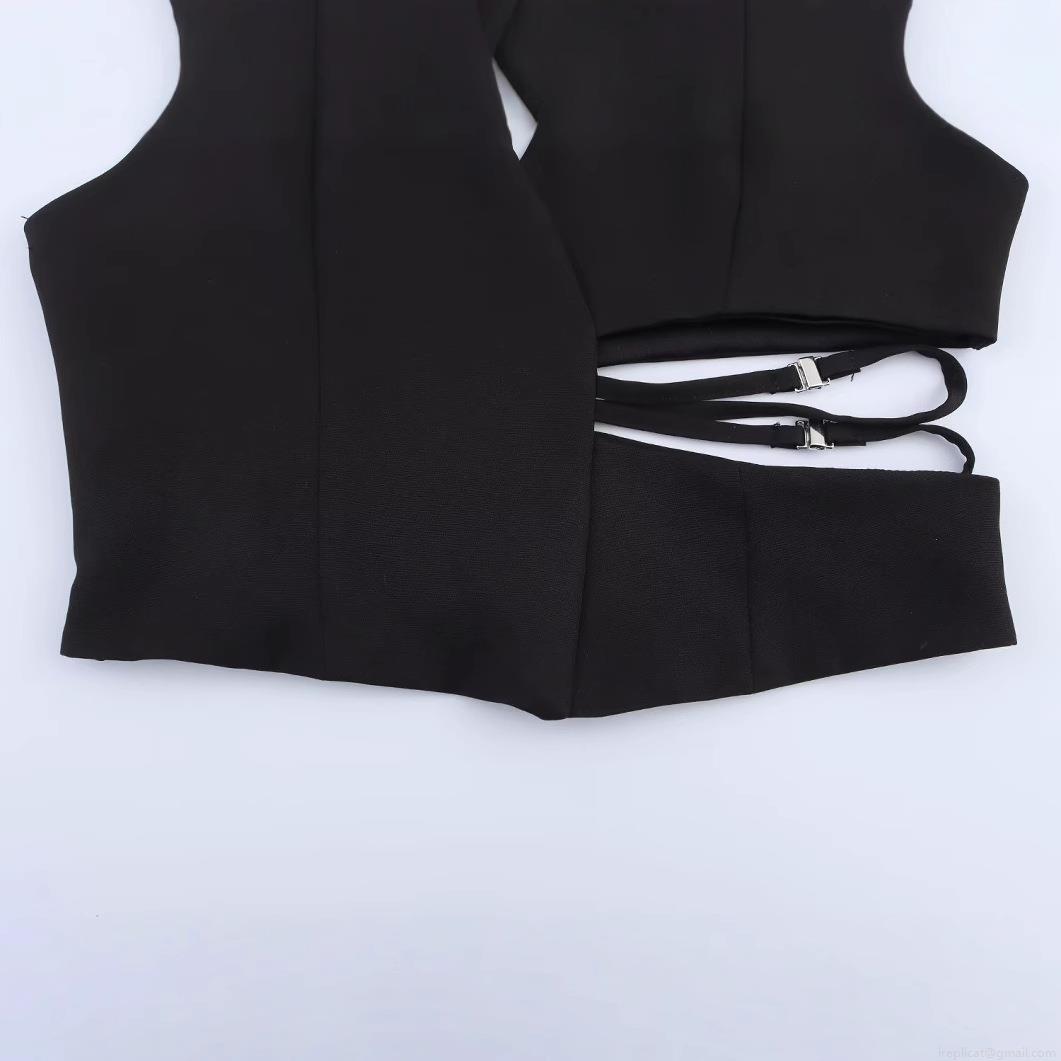 • Women's Sexy Halter Neck Cutout Crop Top Polyester Tank Top with Metal Buckle Detail Sleeveless V-Neck Slim Fit Top for Party Clubwear