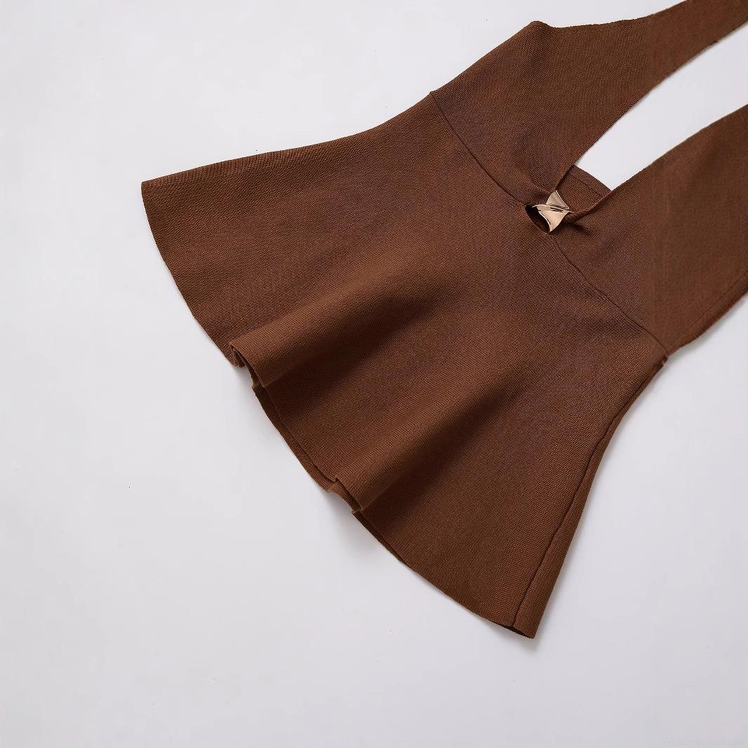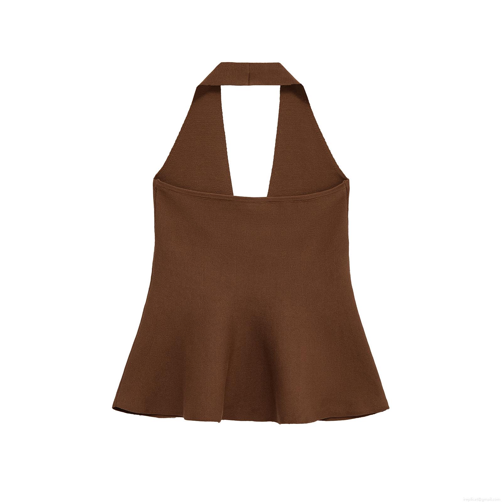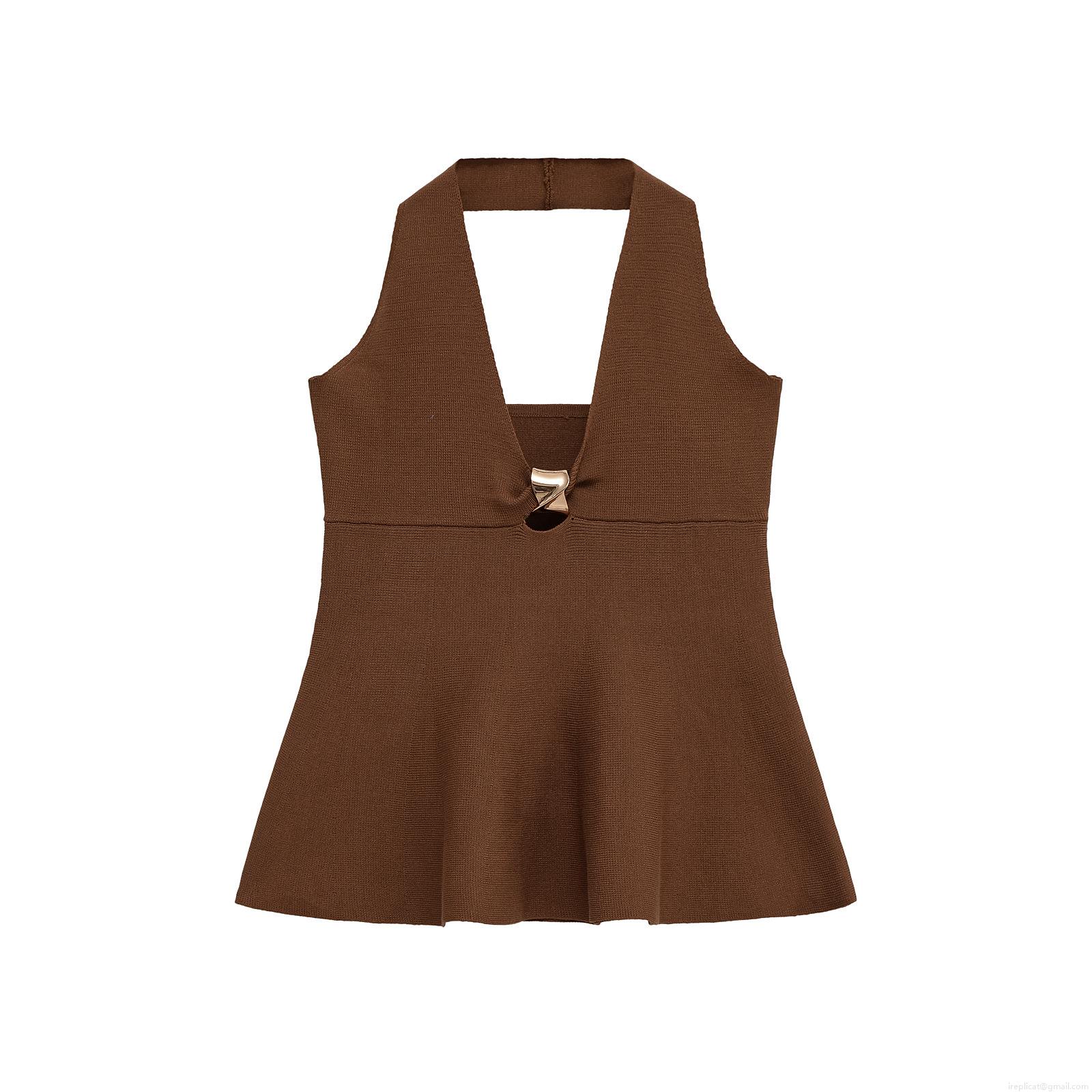 • Women's Sexy Halter Neck Knit Top With Gold Metal Buckle Backless Ruffle Peplum Hem Solid Color Sleeveless Slim Fit Polyester Mercerized Cotton Party Top