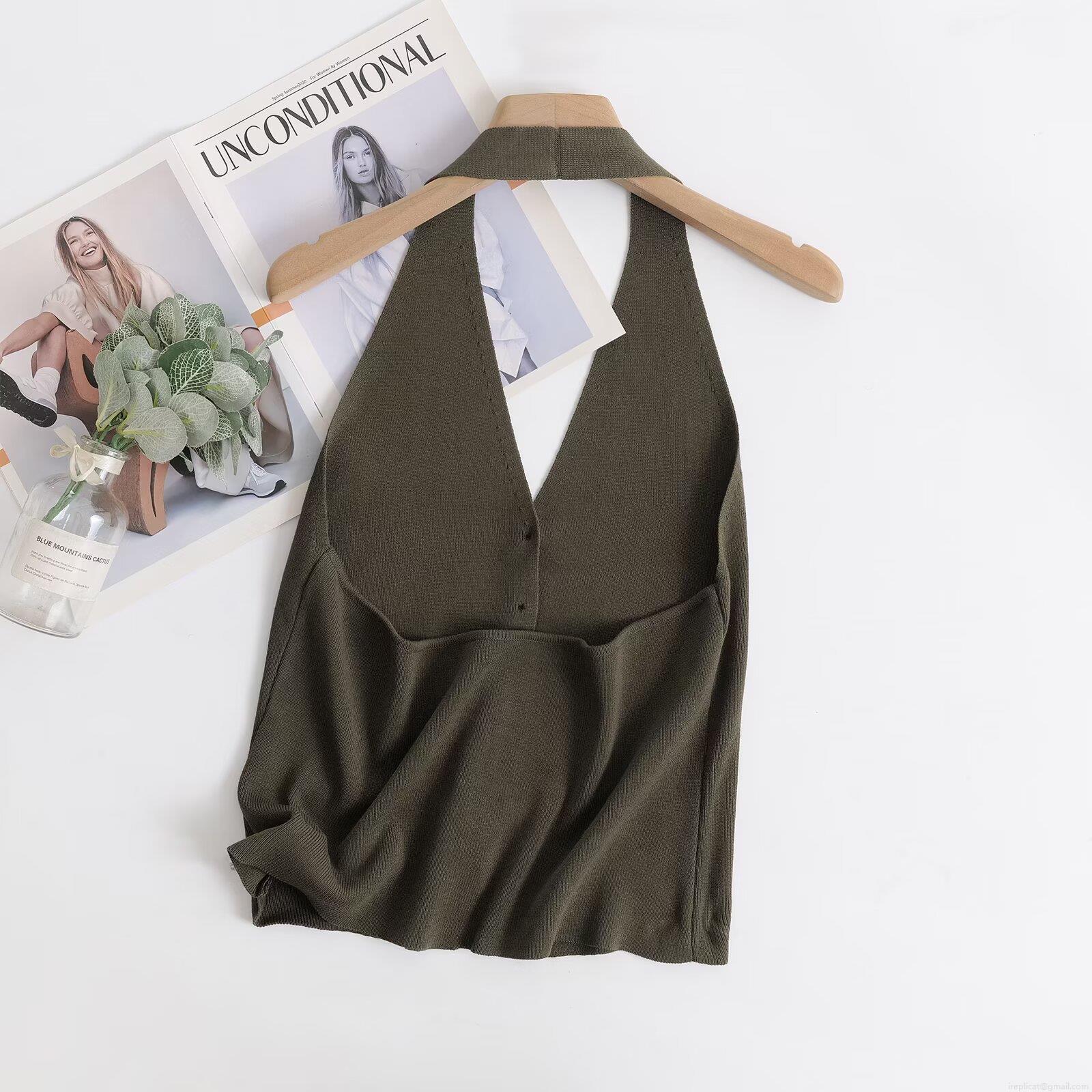 • Women's Sexy Halter Neck Knit Vest V-Neck Button Down Ribbed Sleeveless Top Solid Color Viscose Nylon Blend Camisole For Summer Casual Party Dating Daily Wear