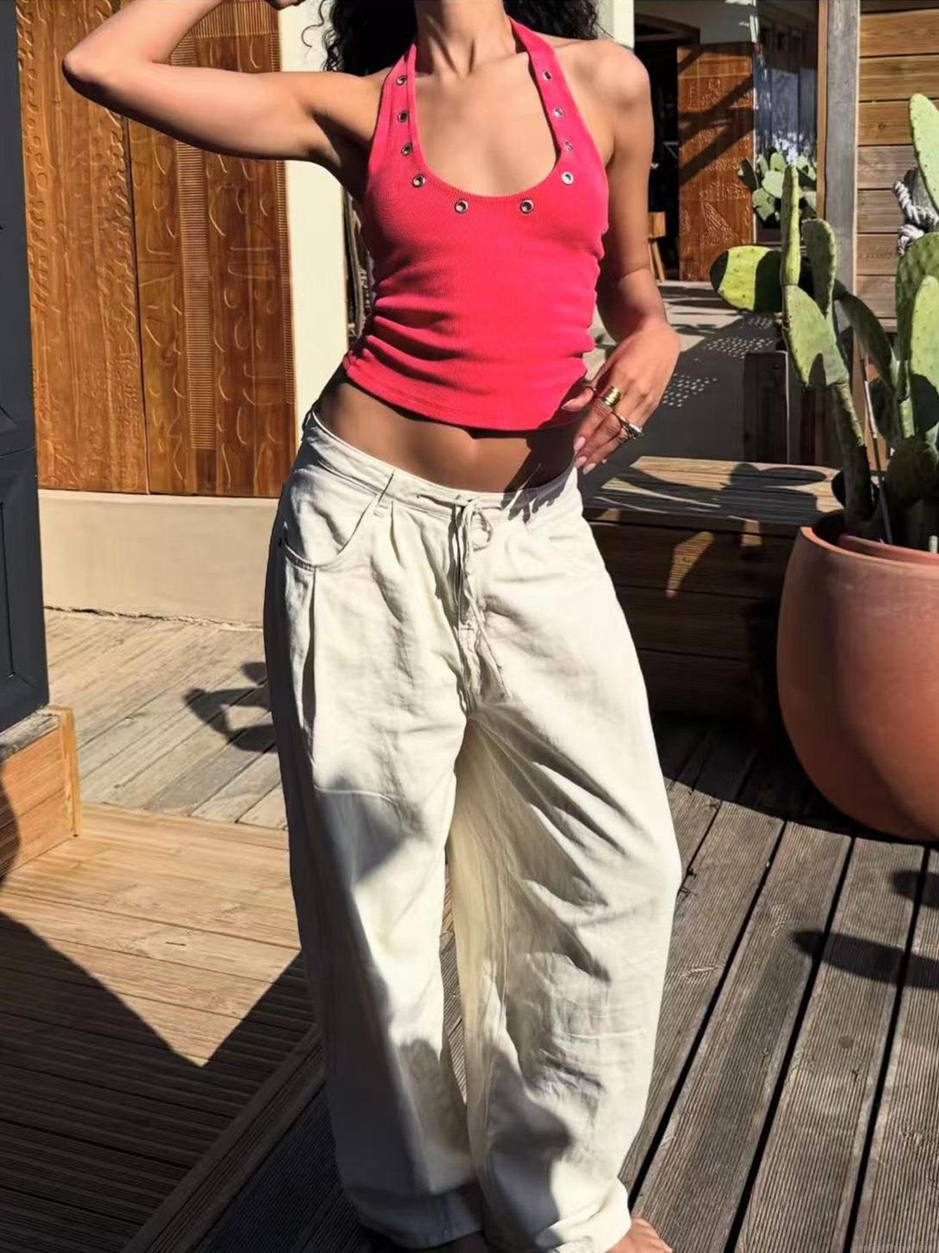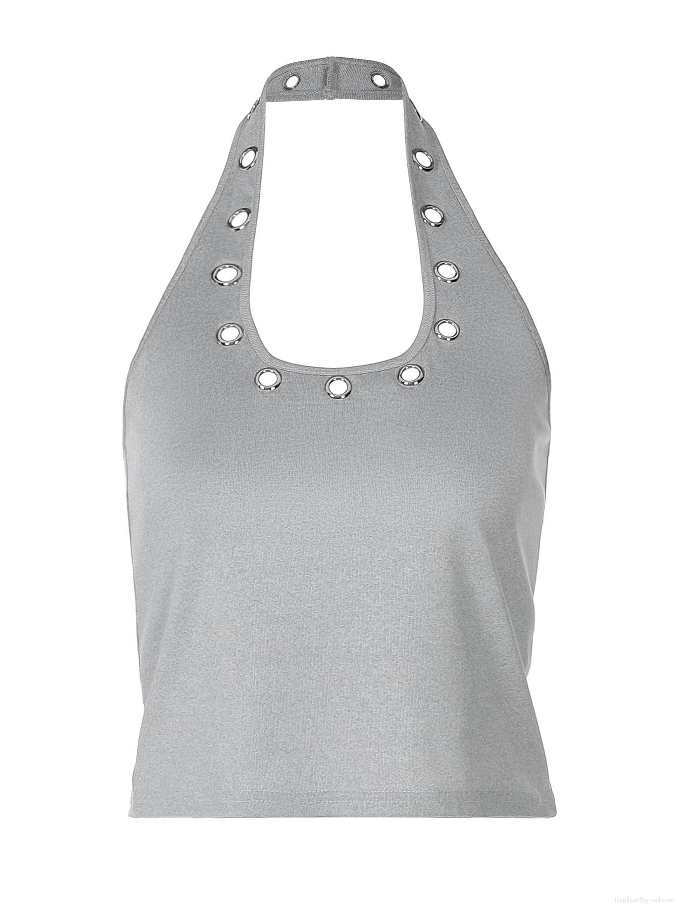 • Women's Sexy Halter Neck Ribbed Vest Top With Metal Grommet Eyelets Summer Sleeveless Backless Street Style Slim Fit Tank Top Polyester Blend