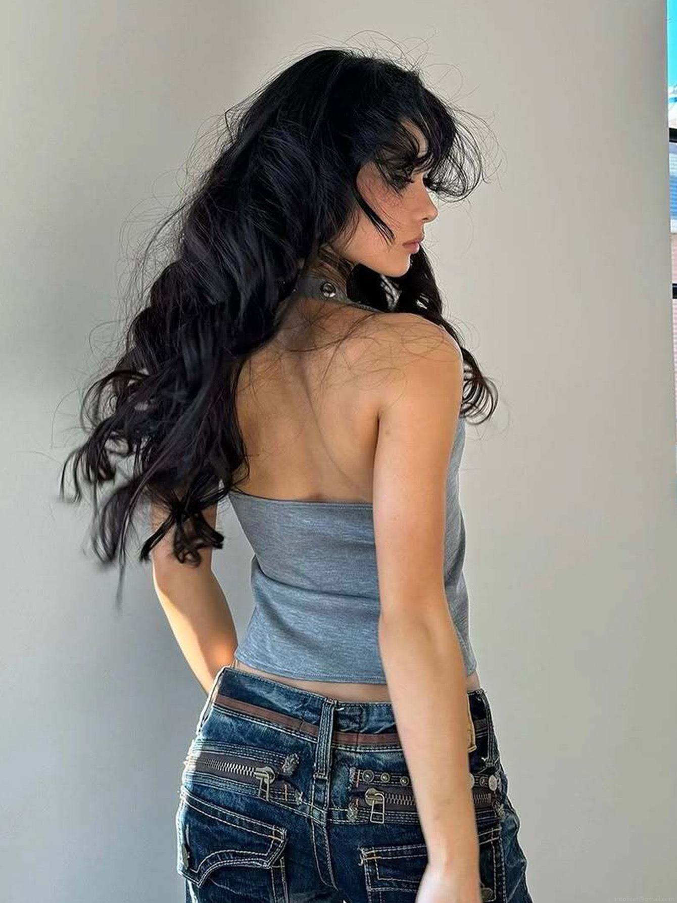 Backless, Navel Exposed, Metal Ring Decoration