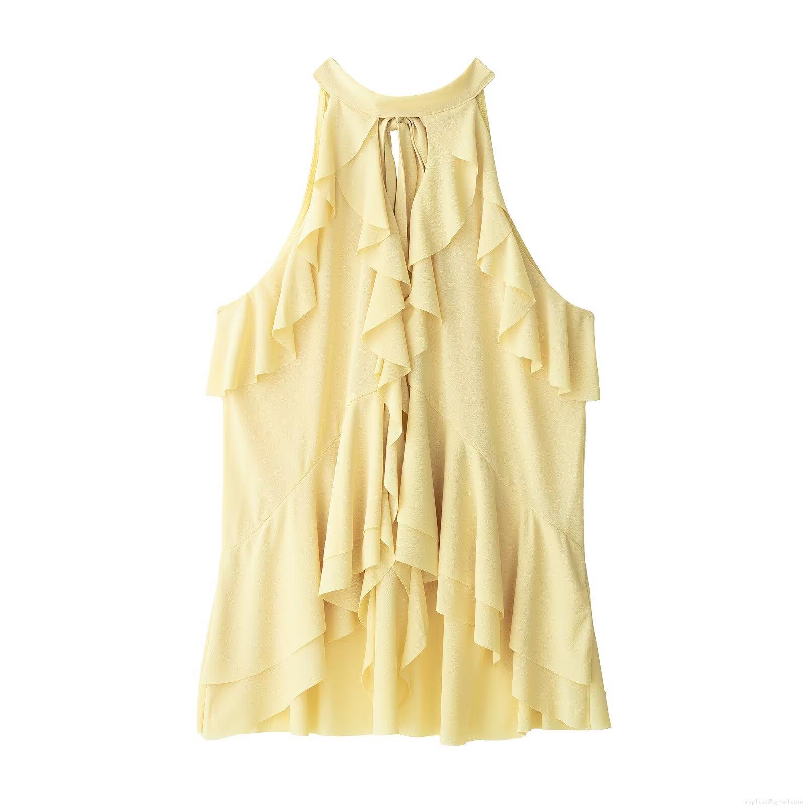 • Women's Sexy Halter Neck Ruffle Cami Top Irregular Layered Chiffon Sleeveless Tank Top With Back Tie Elegant Party Summer Blouse
