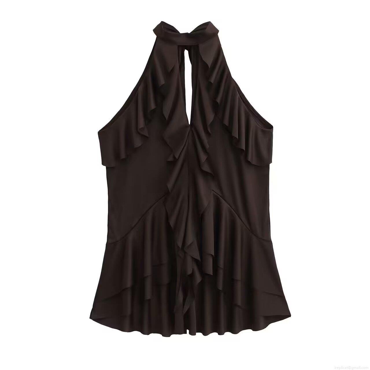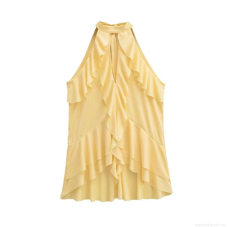 • Women's Sexy Halter Neck Ruffle Tank Top Sleeveless Chiffon Feel Solid Color Back Tie Summer Beach Party Cami Top For Women