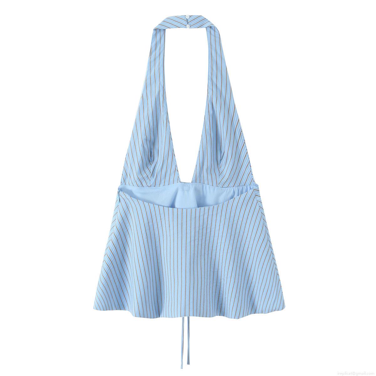 • Women's Sexy Halter Neck Top Deep V Striped Solid Color Bow Tie Backless Peplum Cami Sleeveless Summer Top For Women Party Beach Vacation