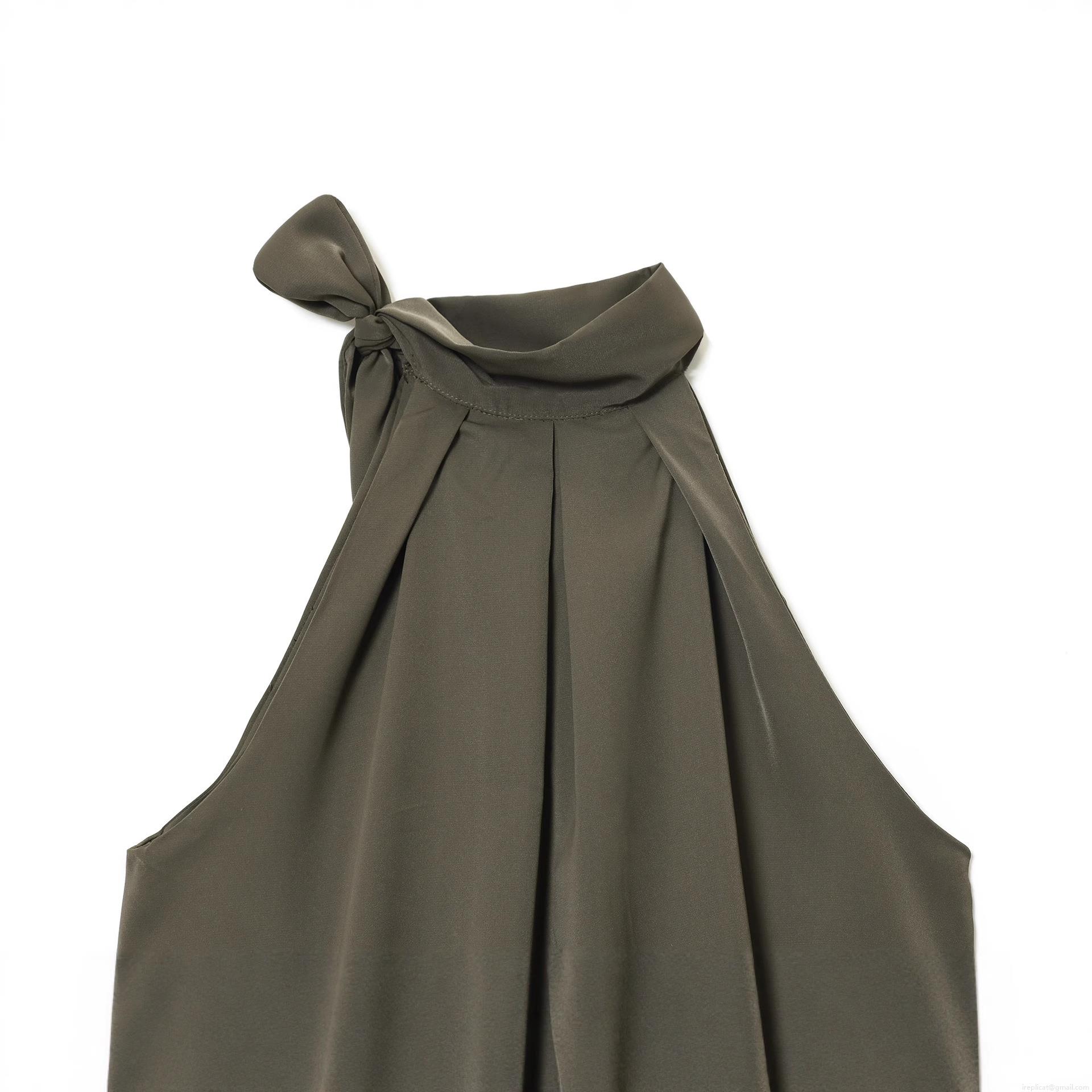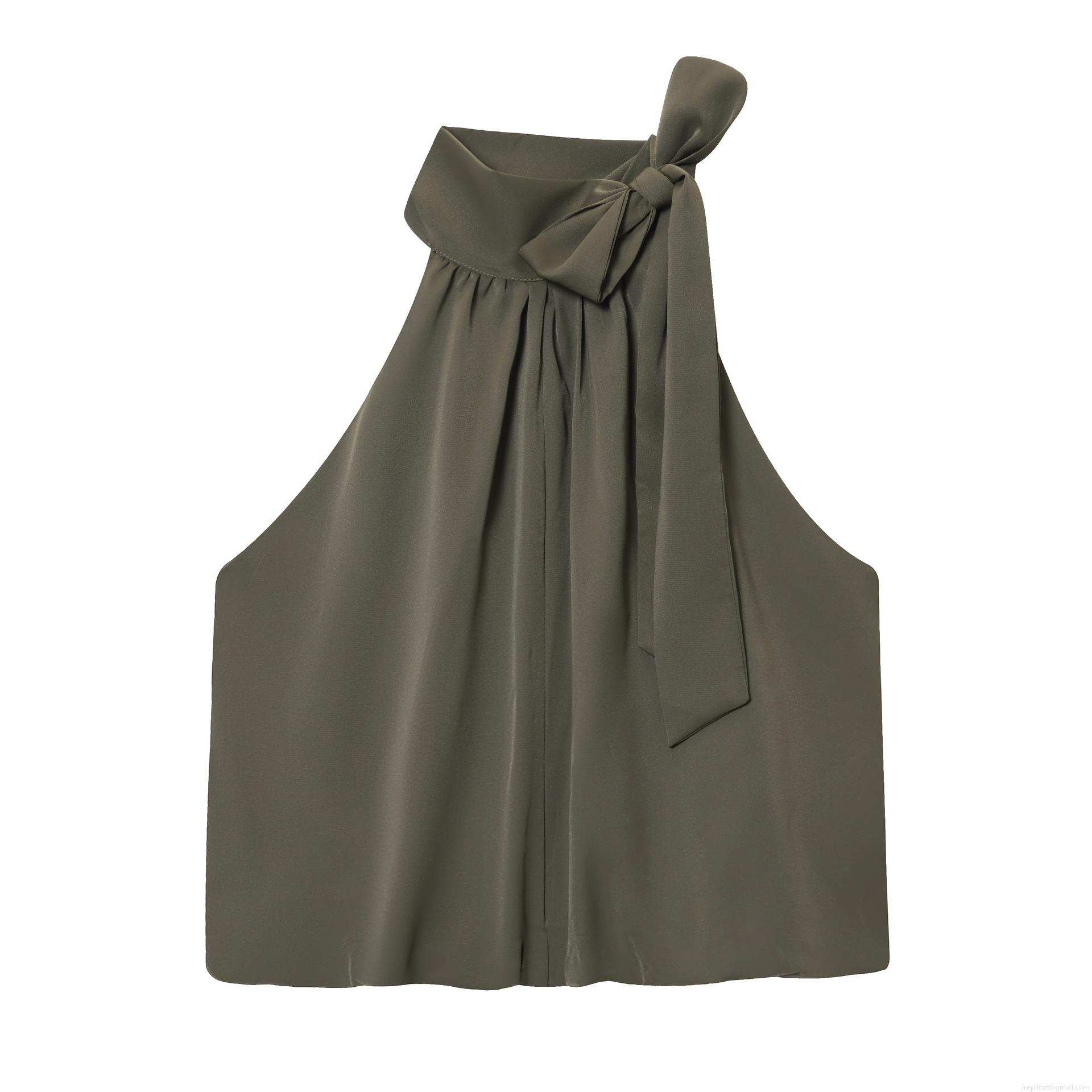 • Women's Sexy Halter Neck Top Elegant Bow Tie Pleated Sleeveless Blouse Satin Look Polyester Camisole For Party Club Summer Slim Fit Top