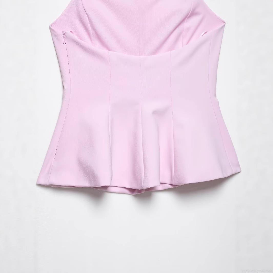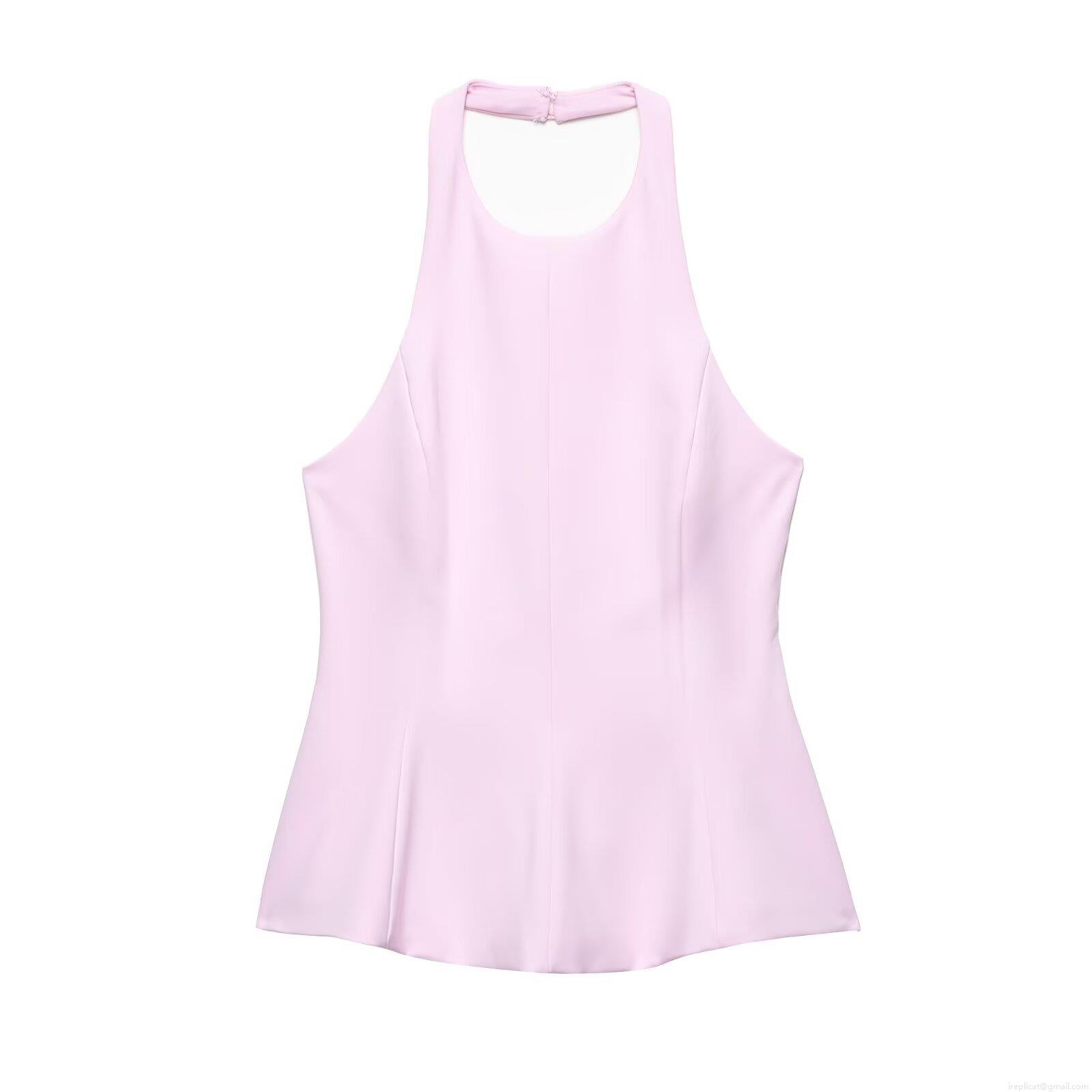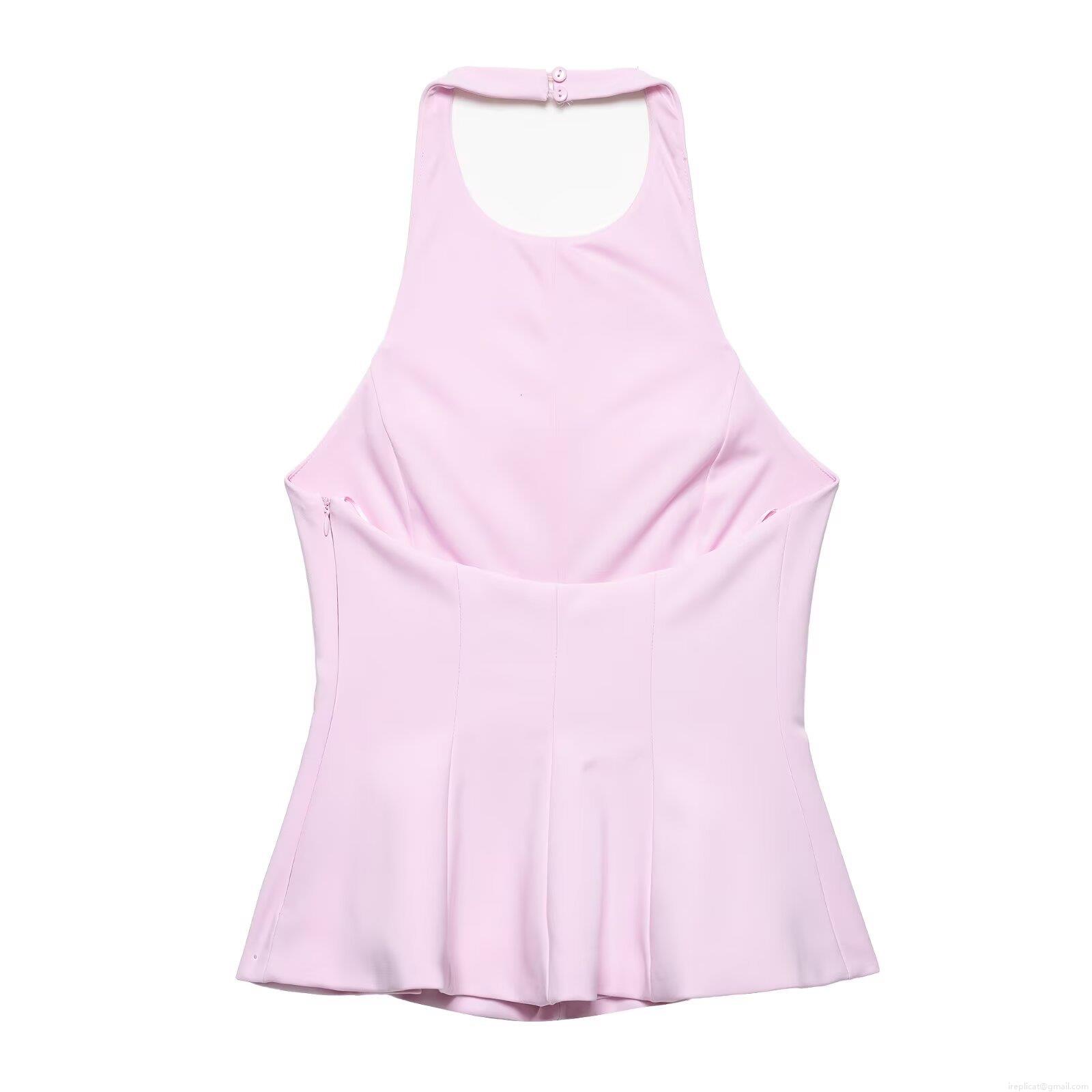 • Women's Sexy Halter Peplum Top Slim Fit Solid Color Sleeveless Backless Shirt With Double Buttons Side Zipper For Party Summer Club Casual Wear
