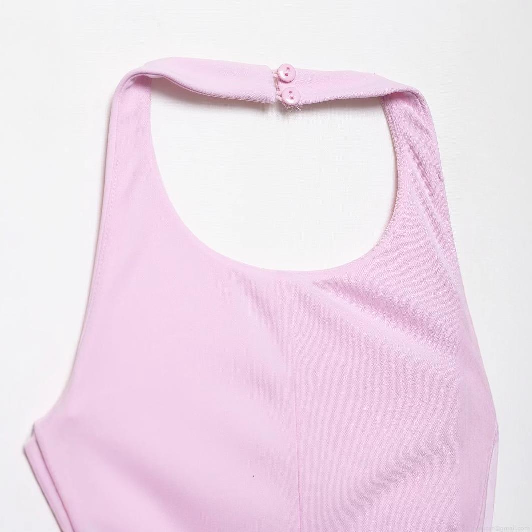 Women's Sexy Halter Peplum Top Slim Fit Solid Color Sleeveless Backless Shirt With Double Buttons Side Zipper For Party Summer Club Casual Wear