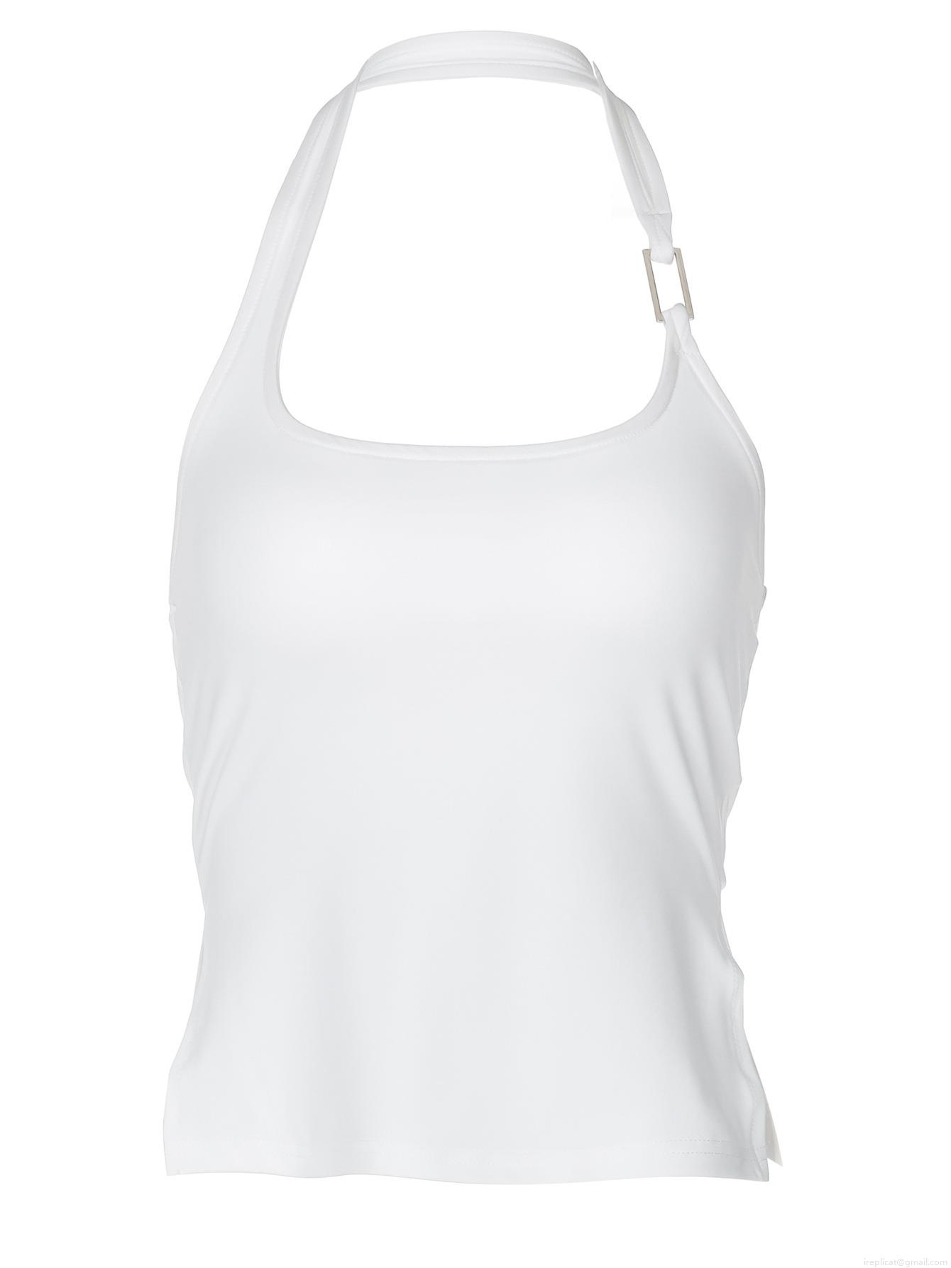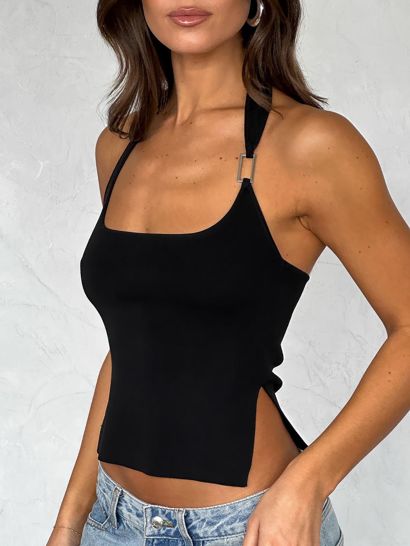 • Women's Sexy Halter Tank Top Metal Buckle Decor Side Slit Slim Fit Solid Sleeveless Camisole Crop Top For Clubwear Party Streetwear Summer