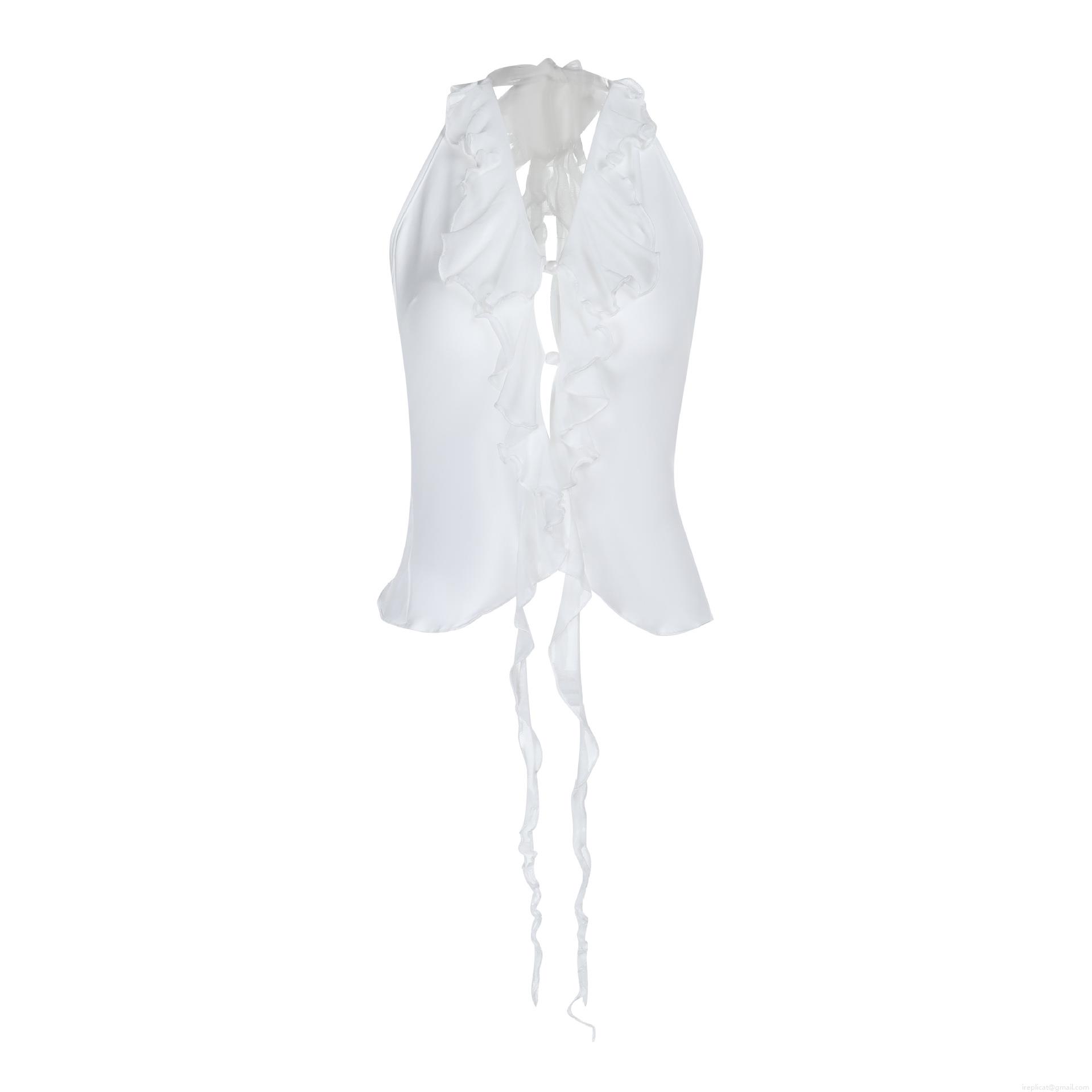 • Women's Sexy Halter Top Backless Ruffle V-Neck Tie-Up Polyester Spandex Slim Fit Crop Top For Summer Beach Vacation Party