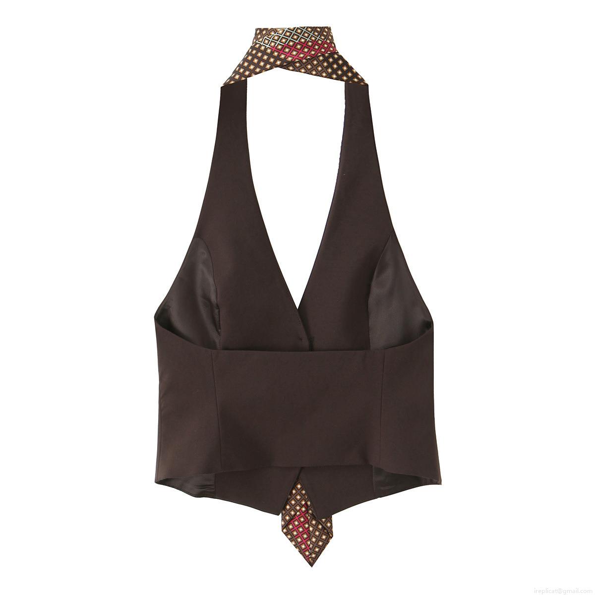 • Women's Sexy Halter Vest Top Polyester Spandex Geometric Rhombic Pattern Button Down Sleeveless Slim Fit Waistcoat For Party Clubwear Summer Fashion