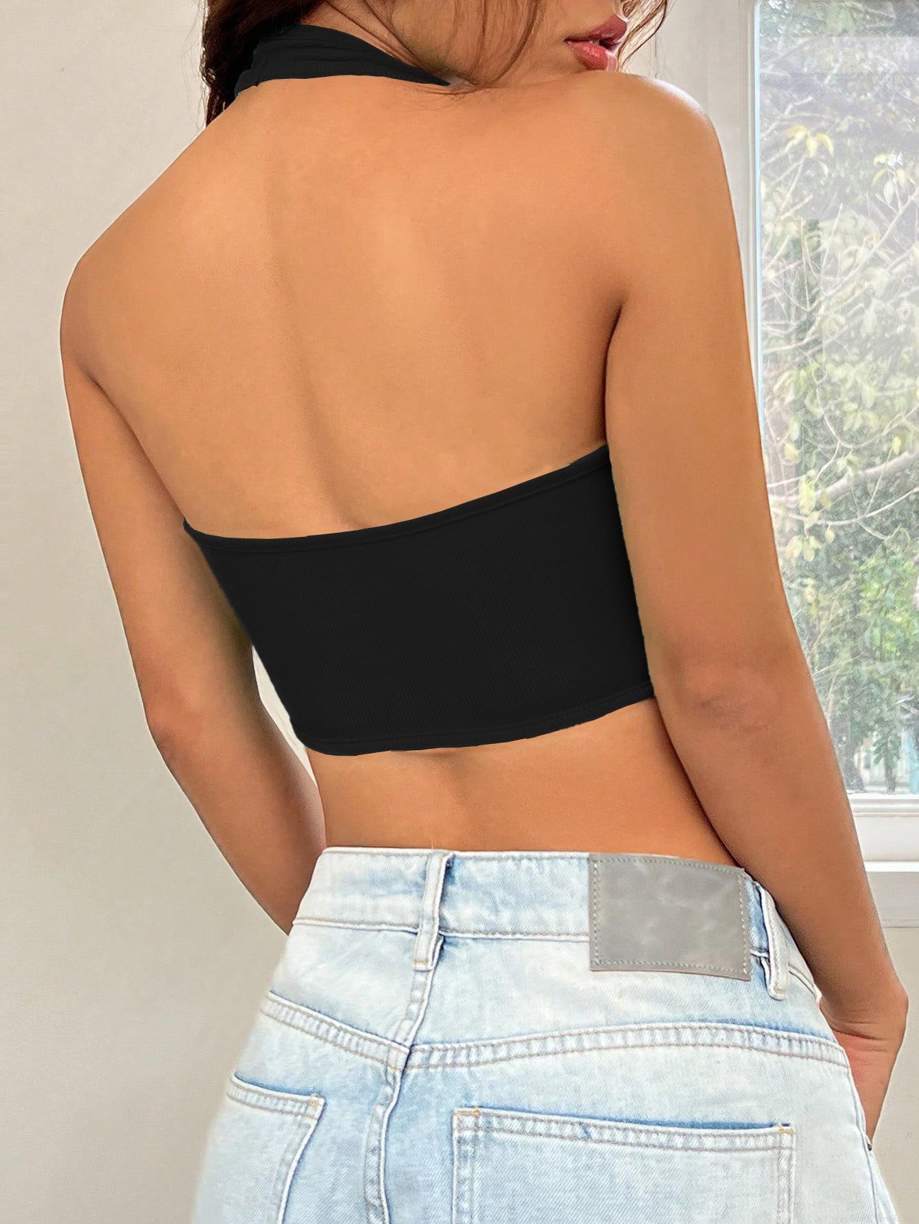 • Women's Sexy Halterneck Ribbed Knit Tank Top Slim Fit Irregular Fishbone Hem Crop Top Sleeveless Summer Streetwear Y2K Party Vest Clothing