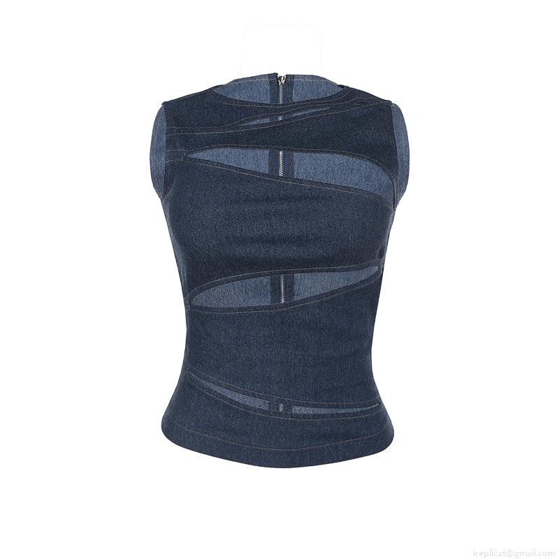 • Women's Sexy Hollow Out Denim-like Tank Top Sleeveless Back Zipper Cut Out Cropped Vest Spicy Girl Street Y2K Style Polyester Spandex Top