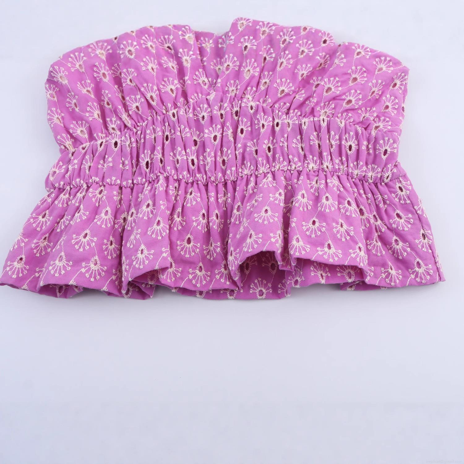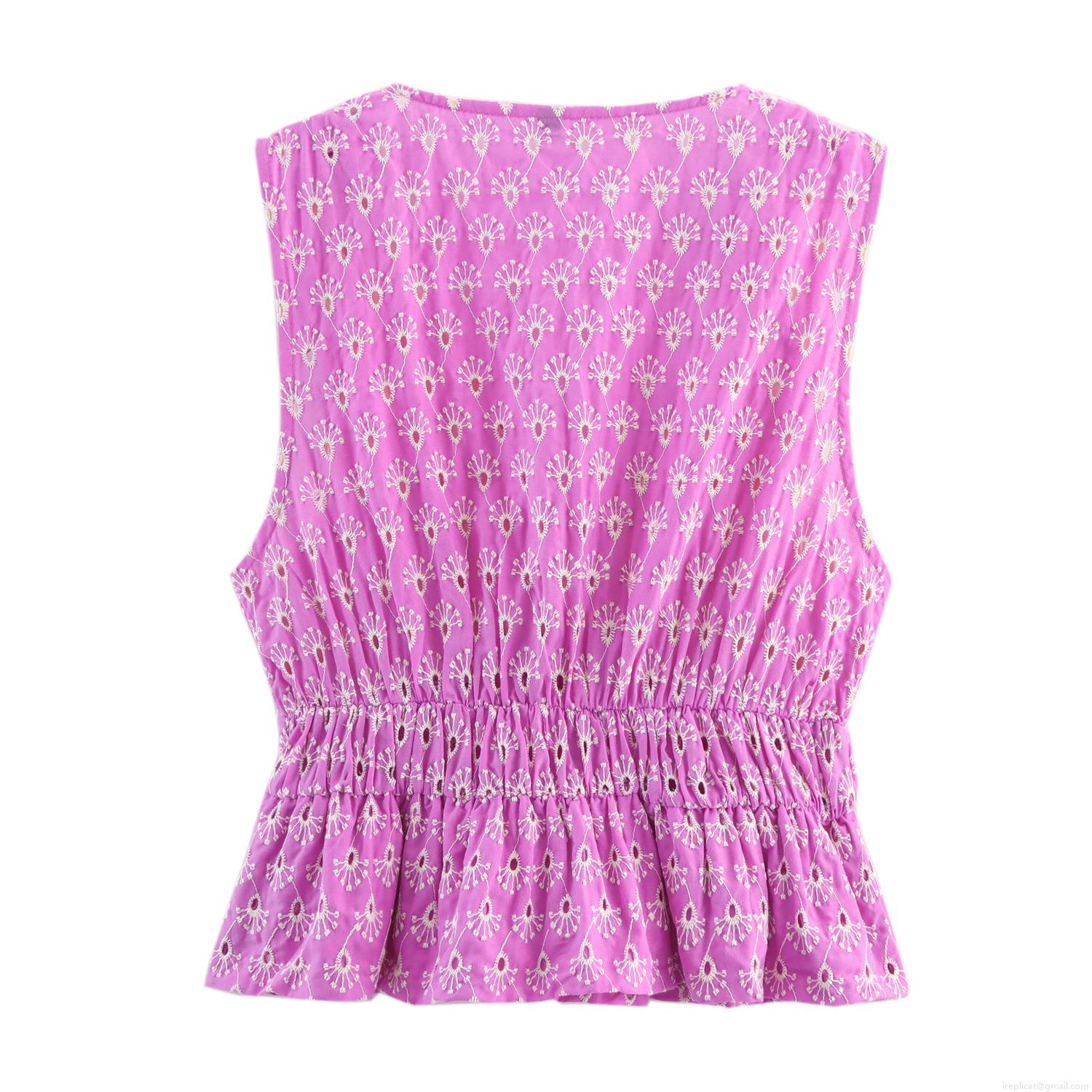 • Women's Sexy Hollow Out Floral Embroidery Bow Tie Shoulder Top V-Neck Peplum Hem Smocked Waist Cotton Blend Sleeveless Summer Blouse