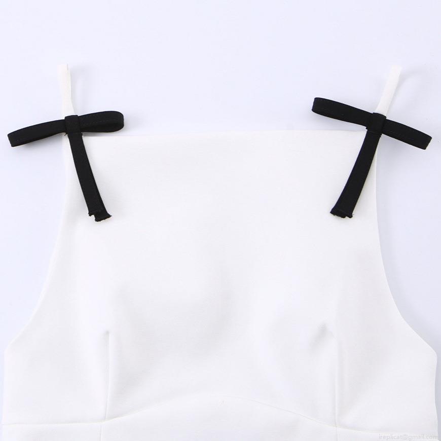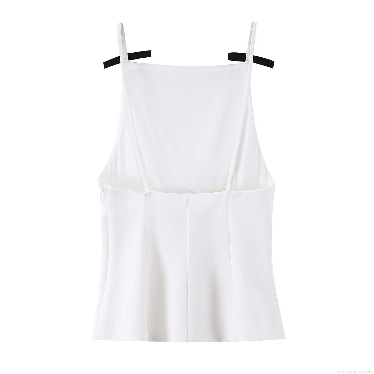 • Women's Sexy Hot Girl Style Camisole Top White With Black Bow Ribbons Slim Fit Polyester Spandex Square Neck Back Zipper Tank Top For Party Dating Summer Wear