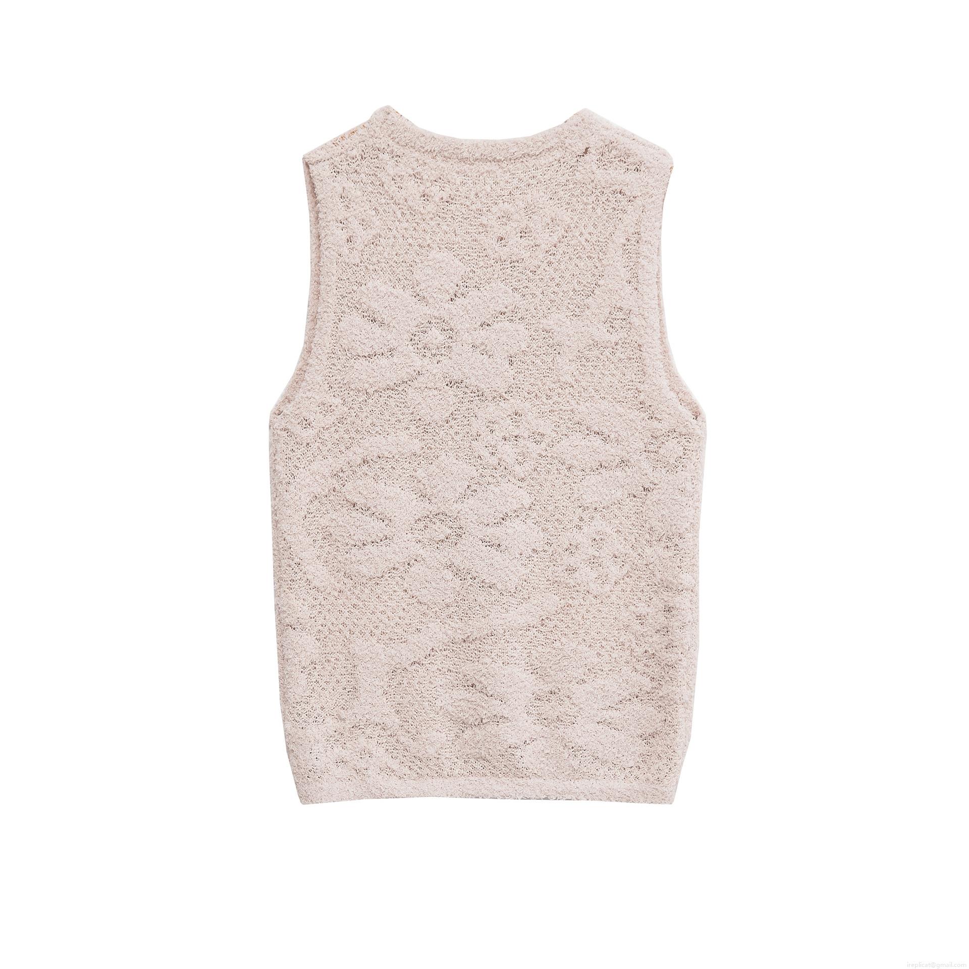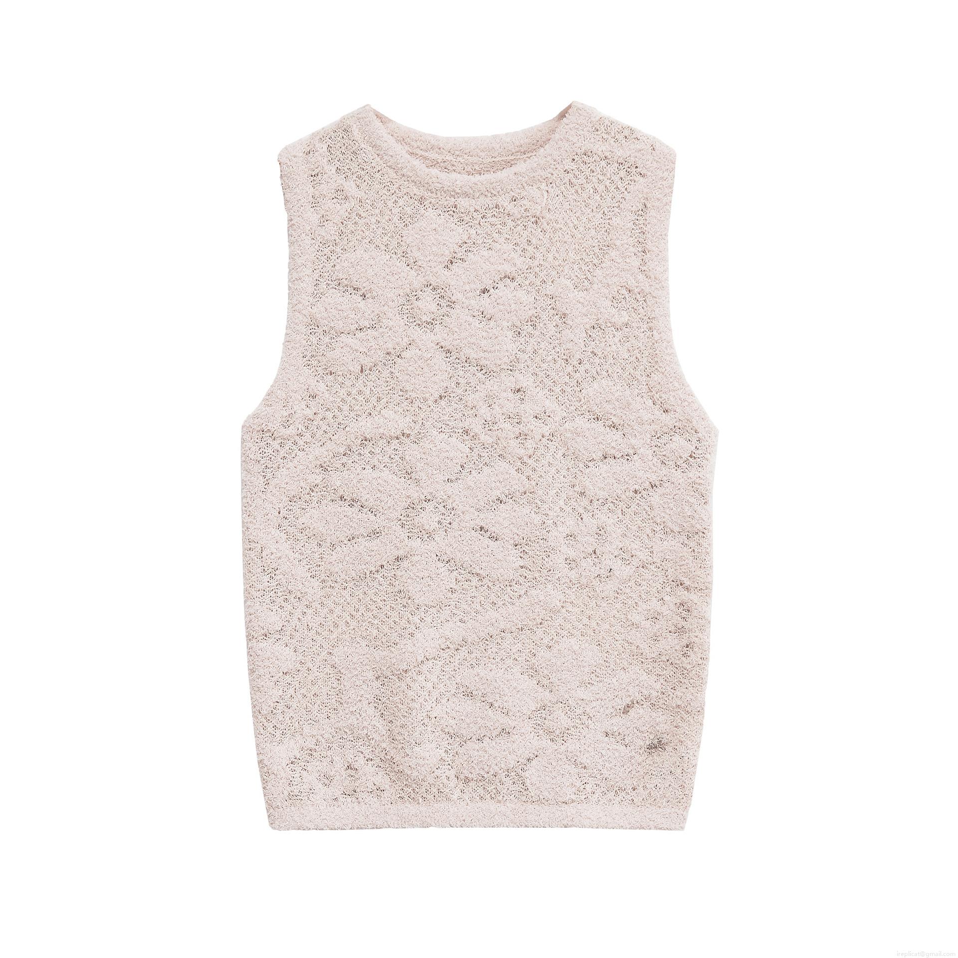 • Women's Sexy Knit Tank Top Sleeveless Round Neck Solid Apricot Plush Textured Vest Short Slim Fit Ins Style Socialite Casual Top For Women Party Dating
