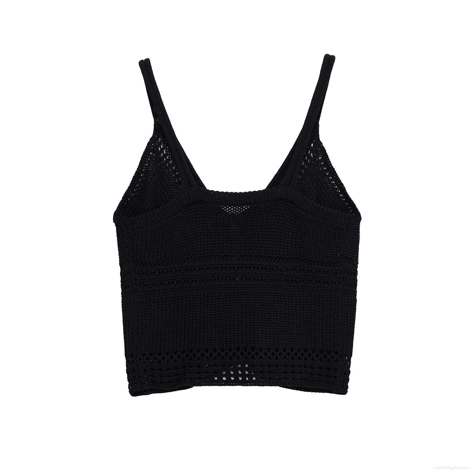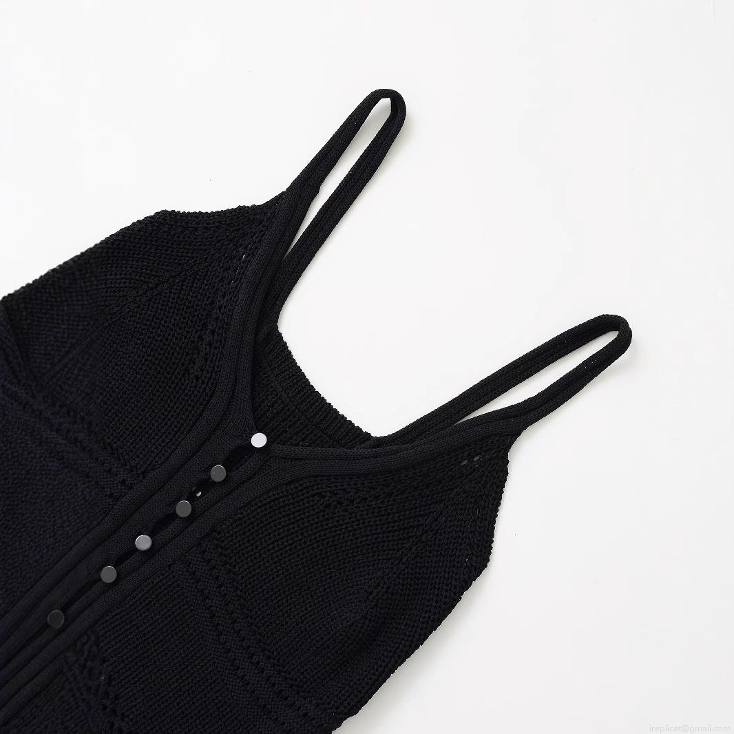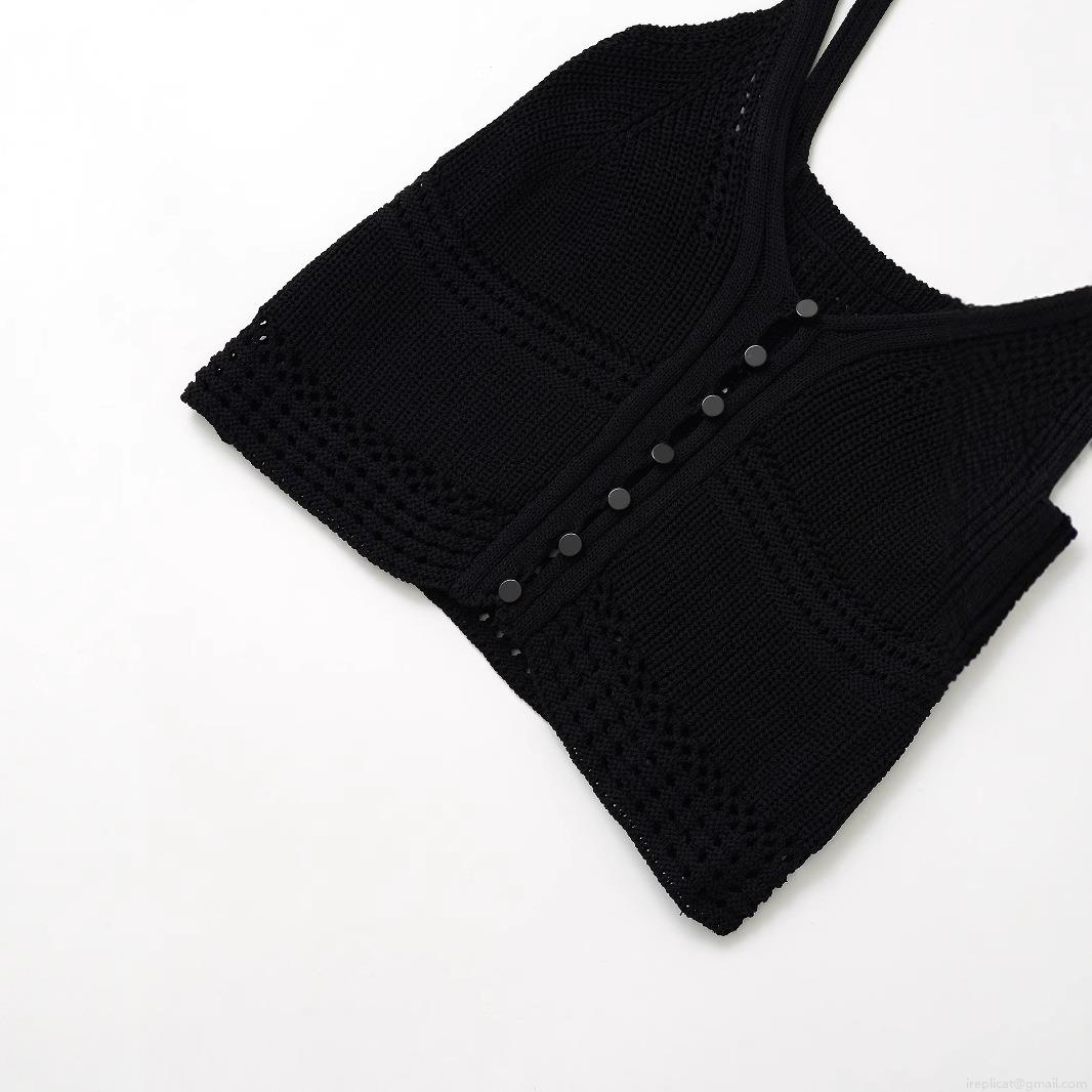 Solid Color, Knitting, Hollow Out, Short, Buttons, Thin Shoulder Straps