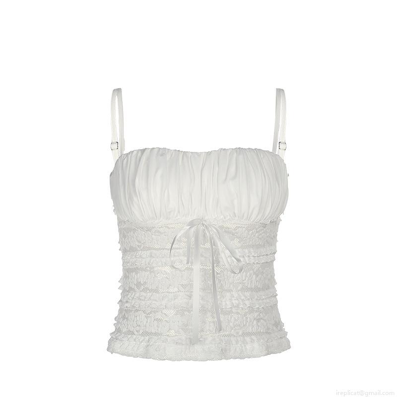 • Women's Sexy Lace Patchwork Camisole Top Spaghetti Strap Bow Ruffle Backless Tank Top Summer Streetwear Party Clubwear Slim Fit Vest