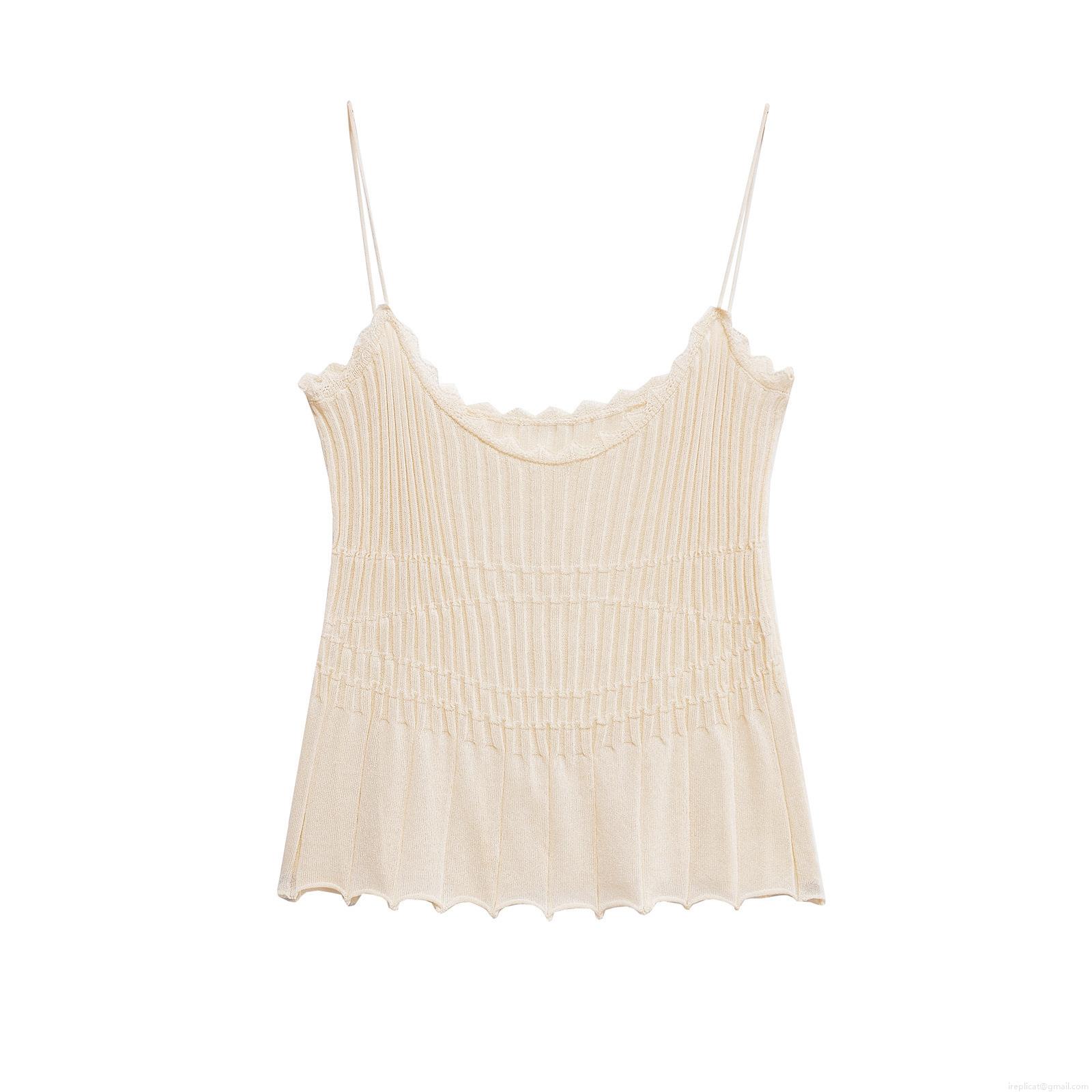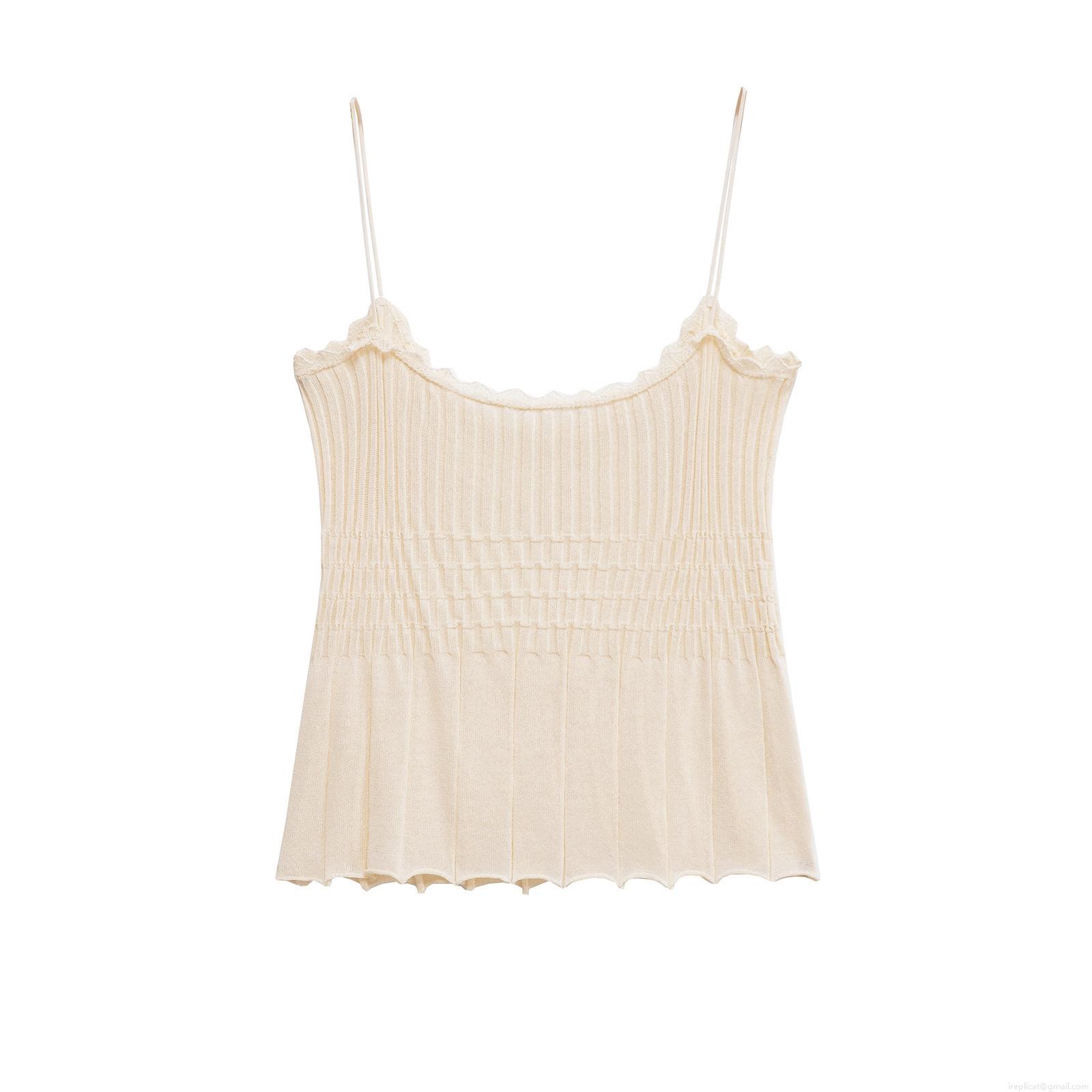 • Women's Sexy Lace Patchwork Knitted Camisole Top Summer Spaghetti Strap Cropped Tank Top Western Streetwear Style Slim Fit Sleeveless Cami Top for Women Girls