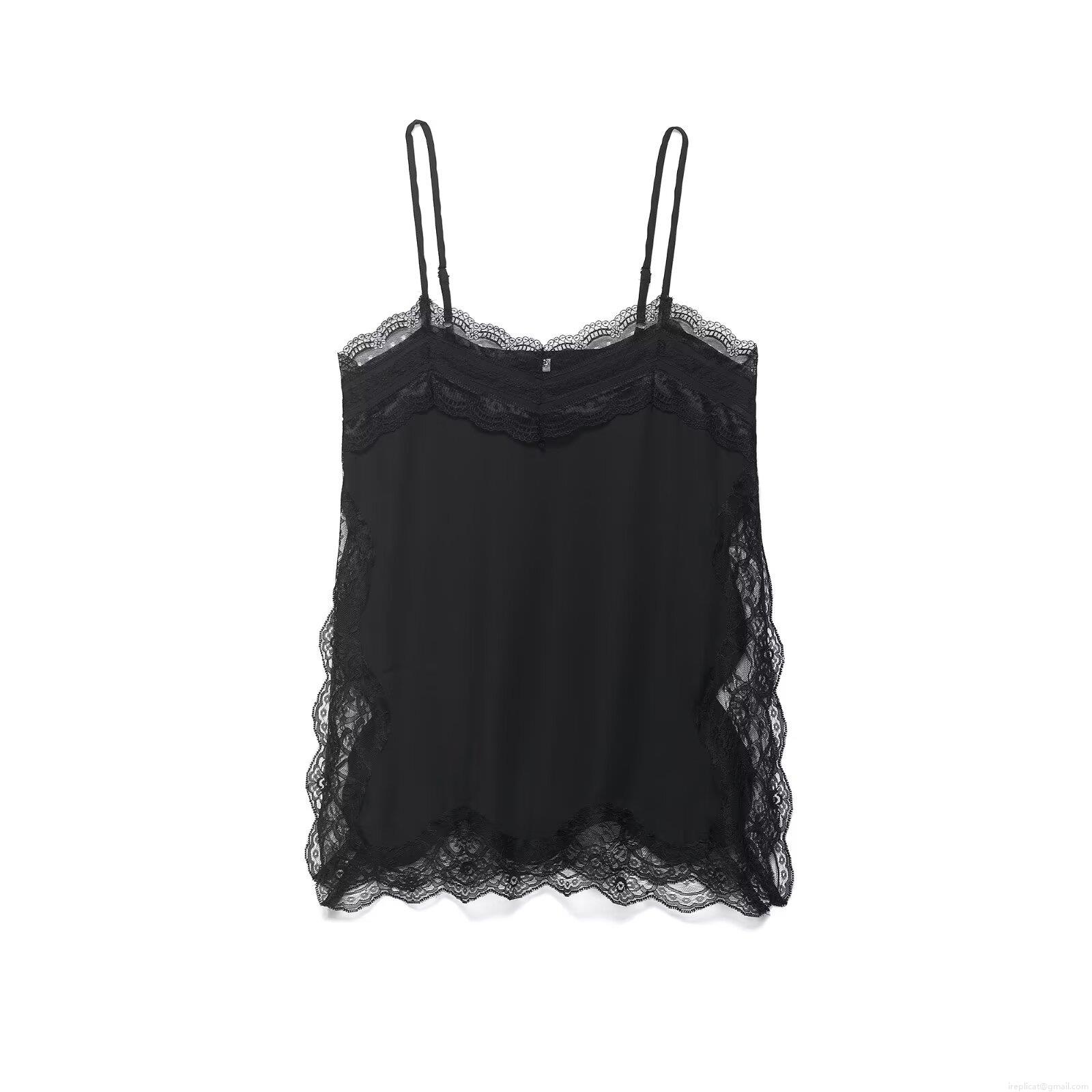 • Women's Sexy Lace Patchwork Satin Camisole V-Neck Sleeveless Lingerie Style Tank Top For Summer Clubwear Party Streetwear Casual Innerwear